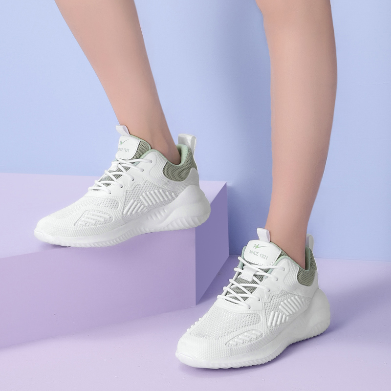 Низкие кроссовки для бега женские бело-зеленые Binary