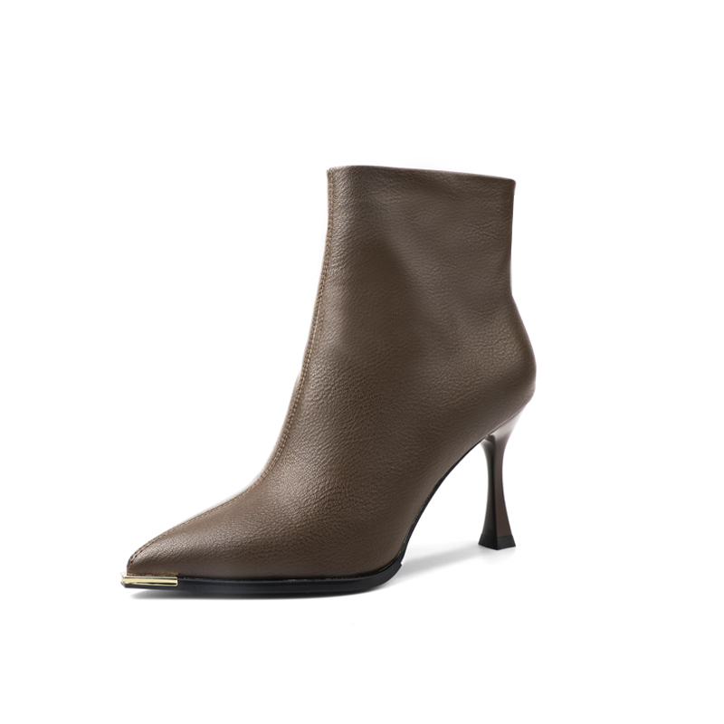 Ботинки на каблуке 8 см женские PINWEISHIDU, цвет хаки [высота каблука 6 см]