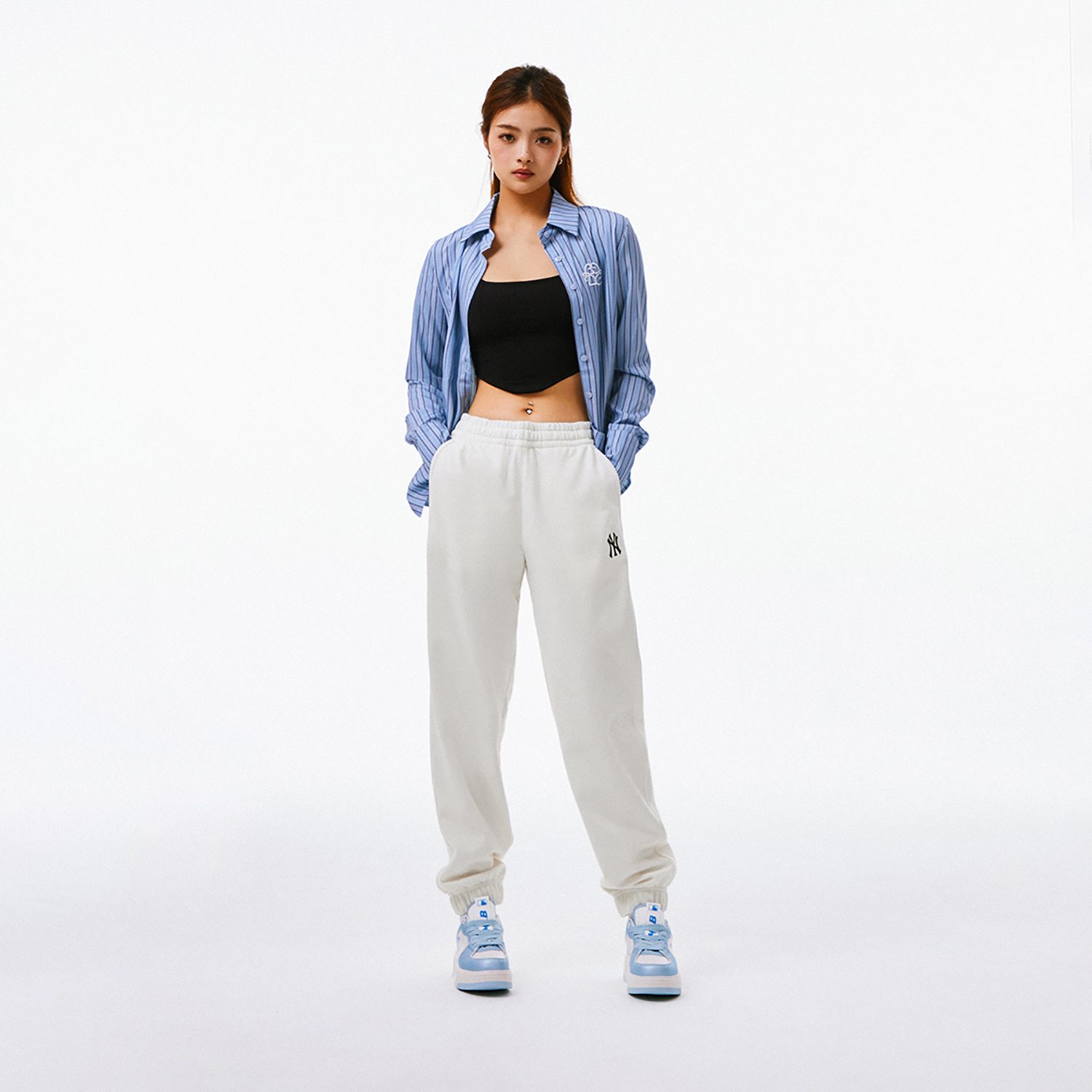 Бейсбольные брюки повседневные унисекс кремовые MLB