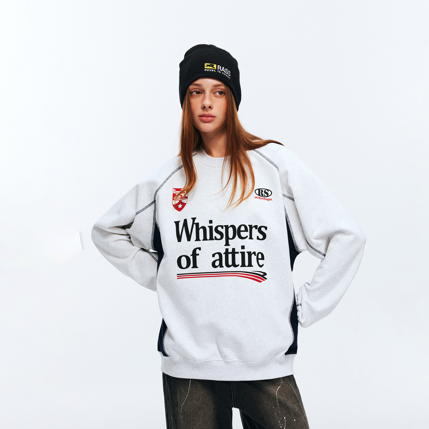 Свитшот унисекс RASS, белый с серым меланжем