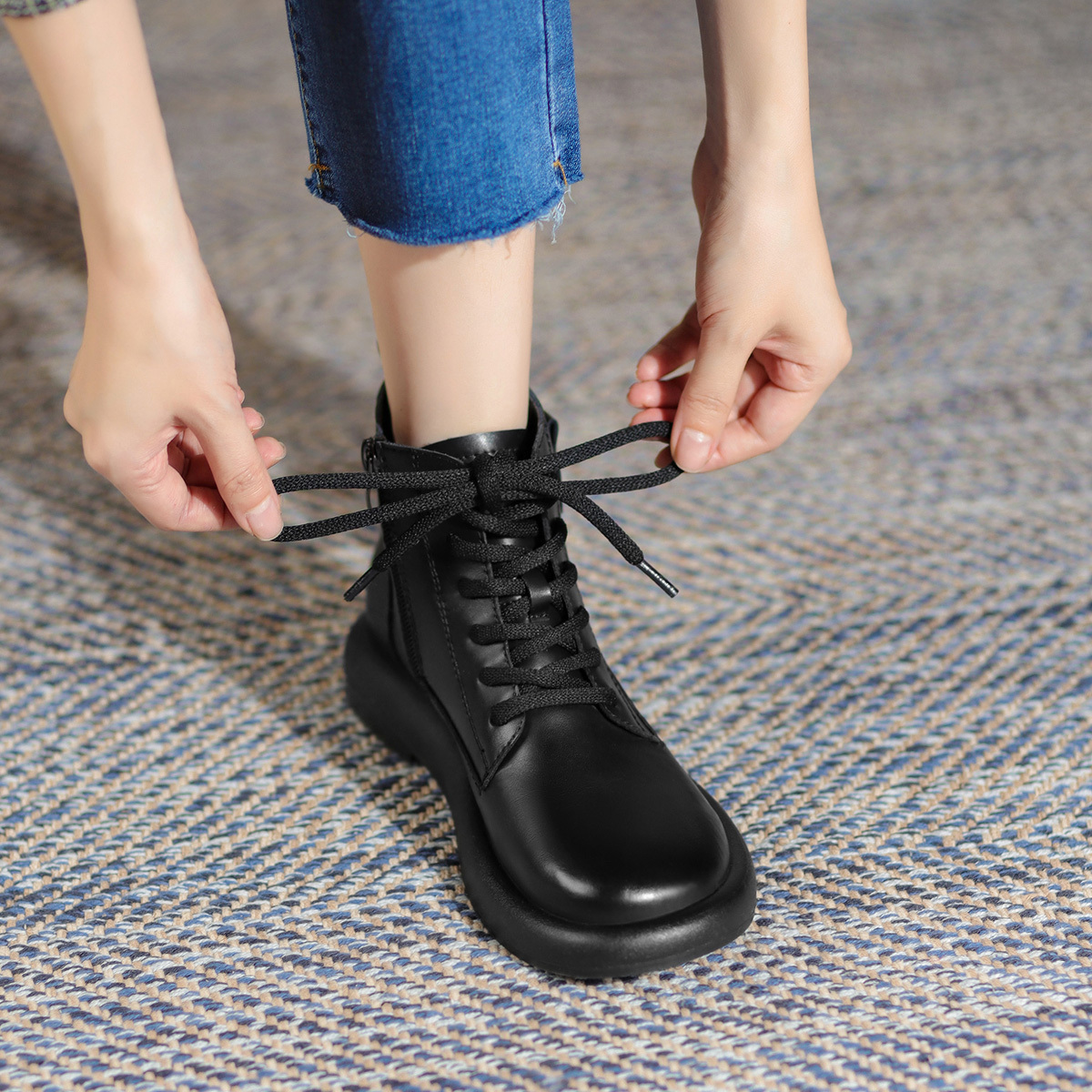 Ботинки женские черные/коричневые ZHR, черные всесезонные без подкладки