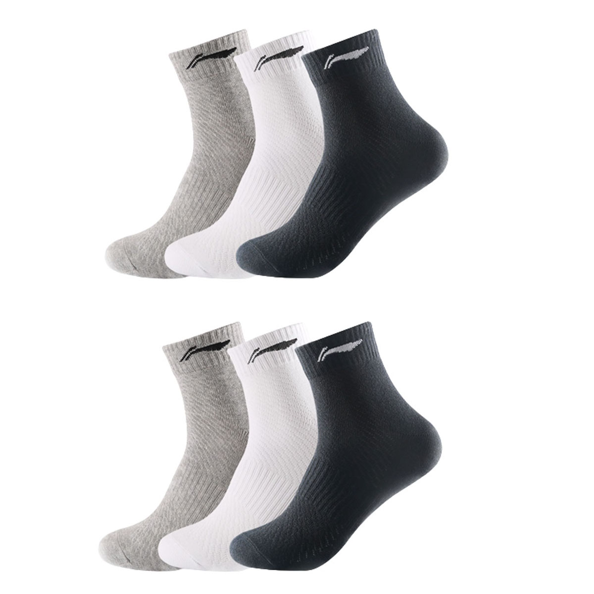 Лининг Носки до середины икры Унисекс 6 пар, Белые 3 пары + Серые 3 пары