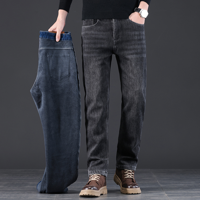 Джинсы мужские Jeep, черно-серые на флисовой подкладке