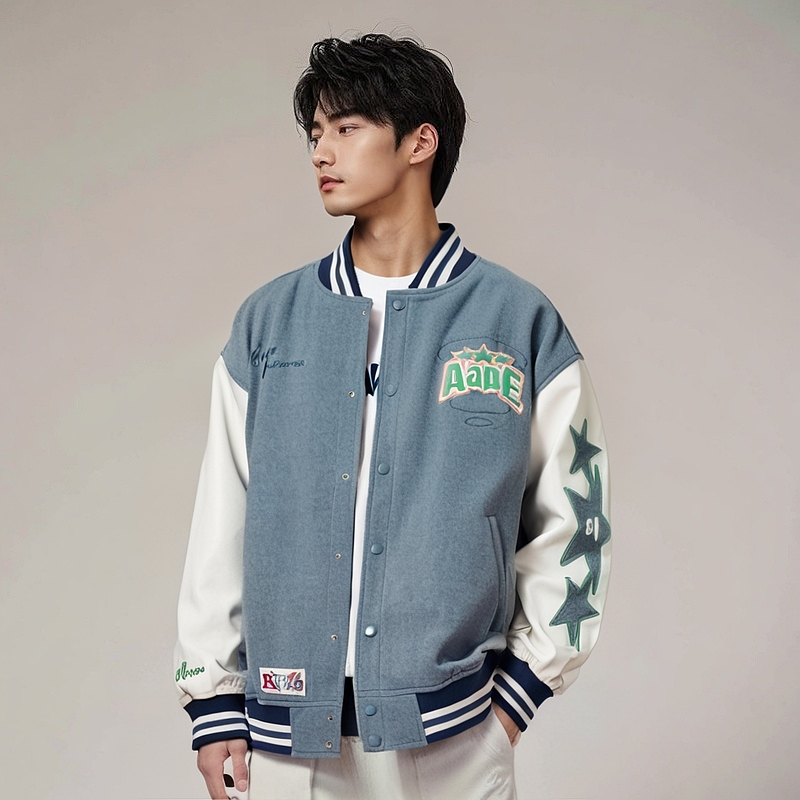 Вышитая логотипом бейсбольная куртка Aape, Пыльно-голубой BLL