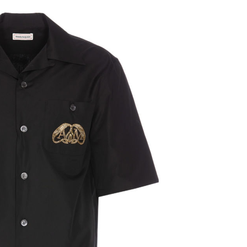 Футболка Alexander McQueen с аппликацией в виде тюленя и пуговицами, черная 53 628₽