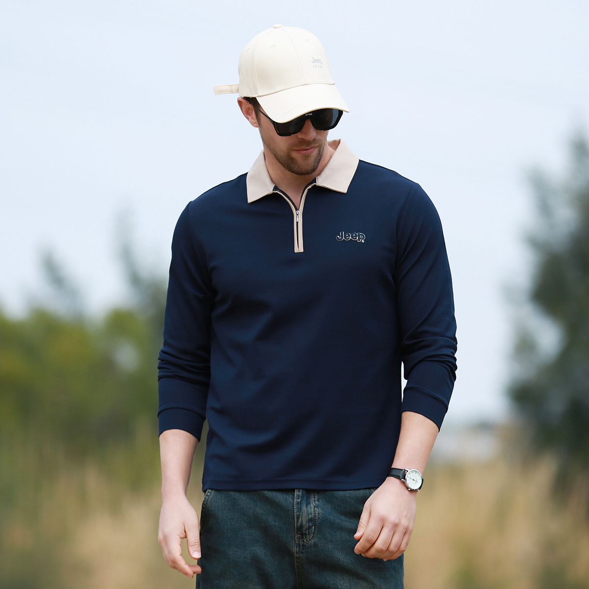 Футболка поло Jeep, серо-зеленая