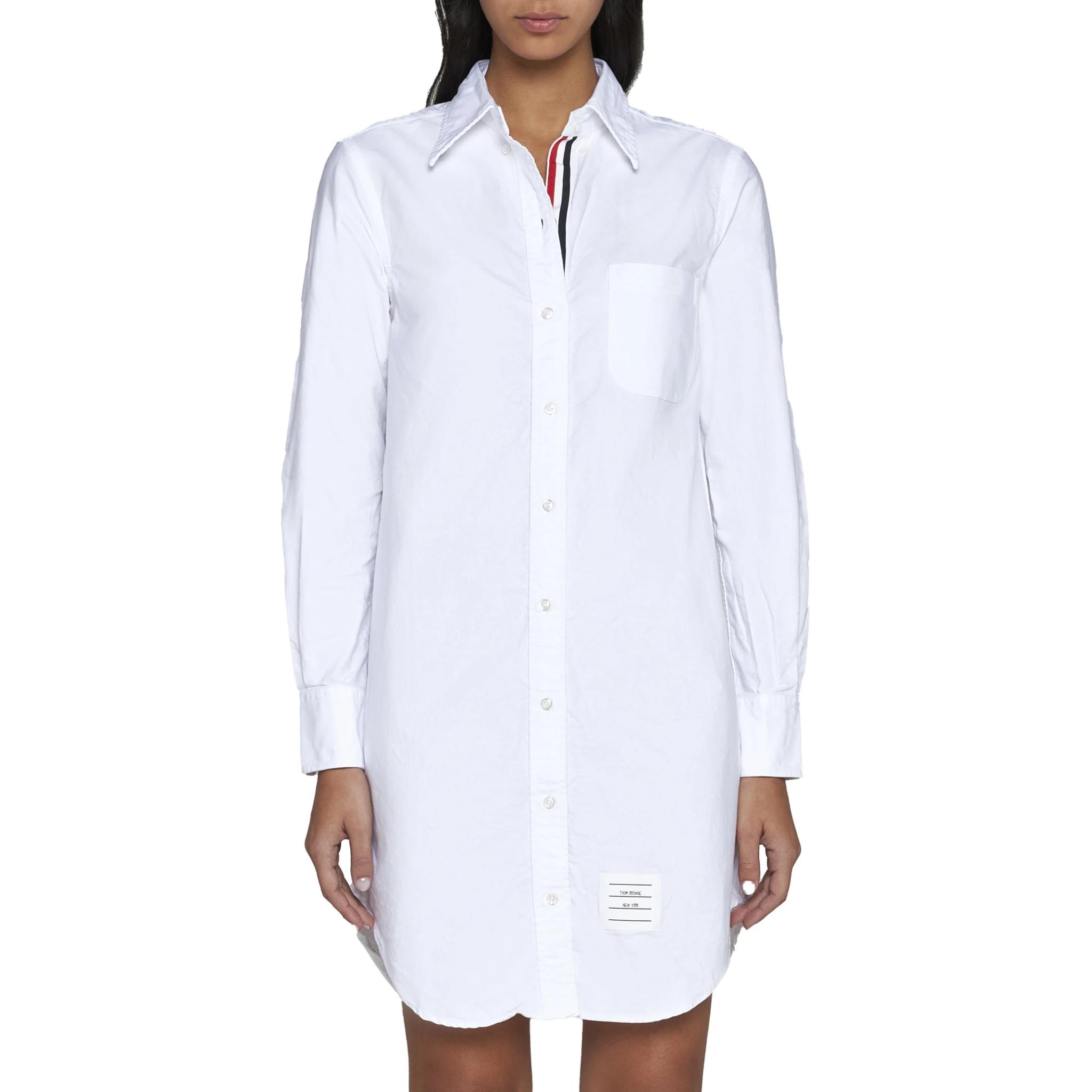 Футболка-платье с кринкл эффектом и асимметричным подолом THOM BROWNE, белый