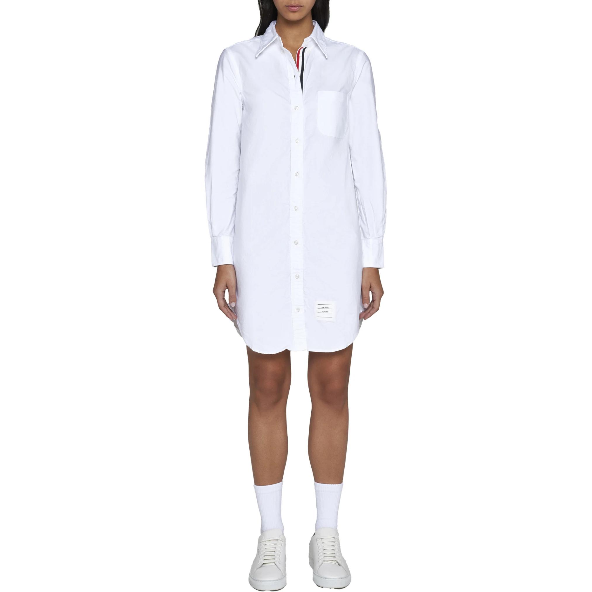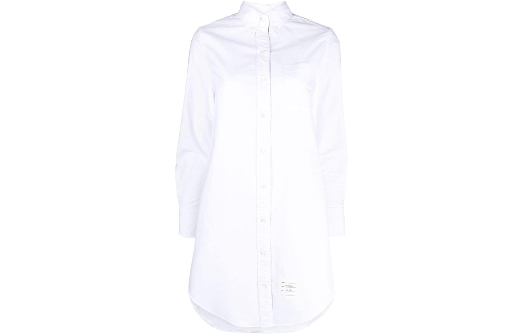 Футболка-платье с кринкл эффектом и асимметричным подолом THOM BROWNE, белый 33 297₽