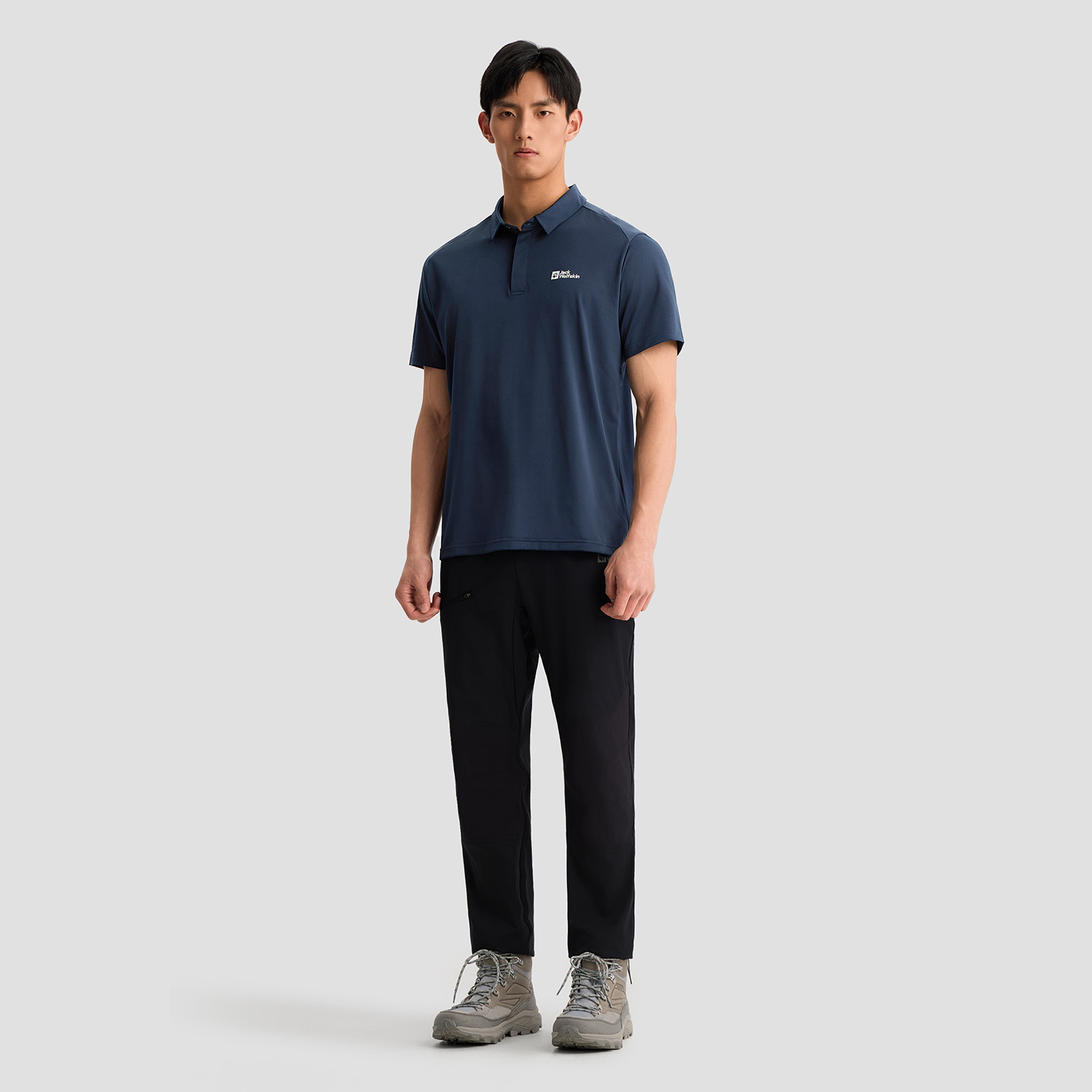 Футболка поло мужская JACK WOLFSKIN, черный/6000