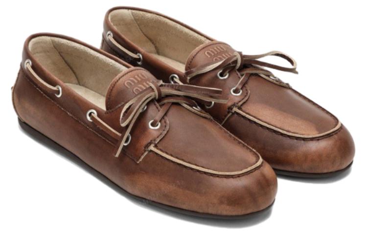 Белёные кожаные лоферы MIU MIU, коричневый 71 664₽