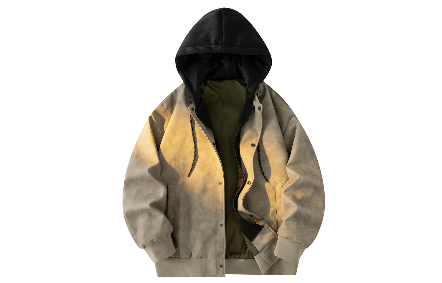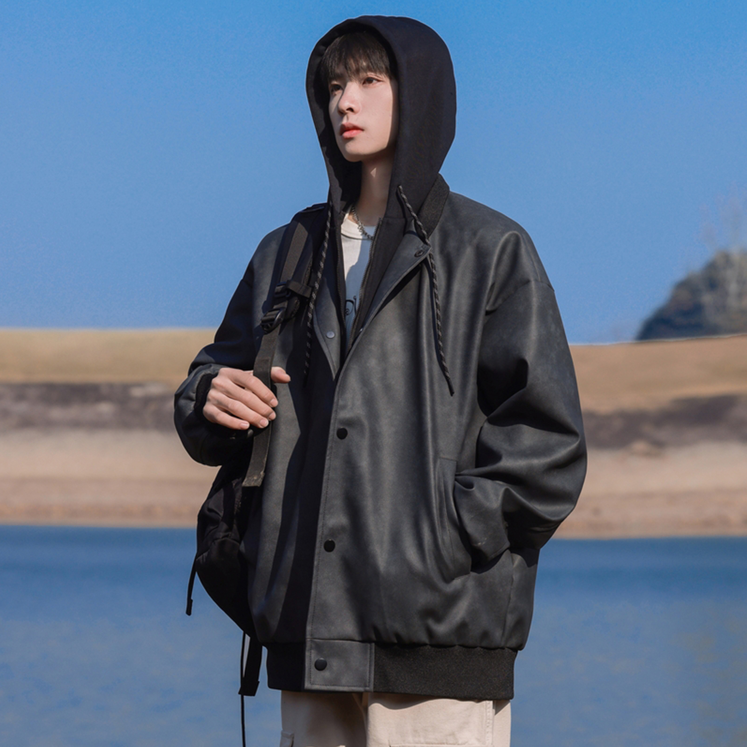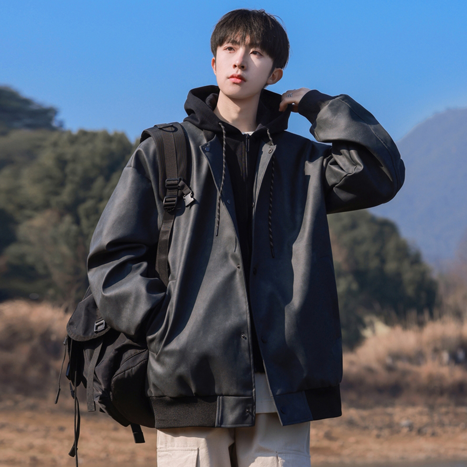Кожаная куртка унисекс PAEFA, с зеленой флисовой подкладкой