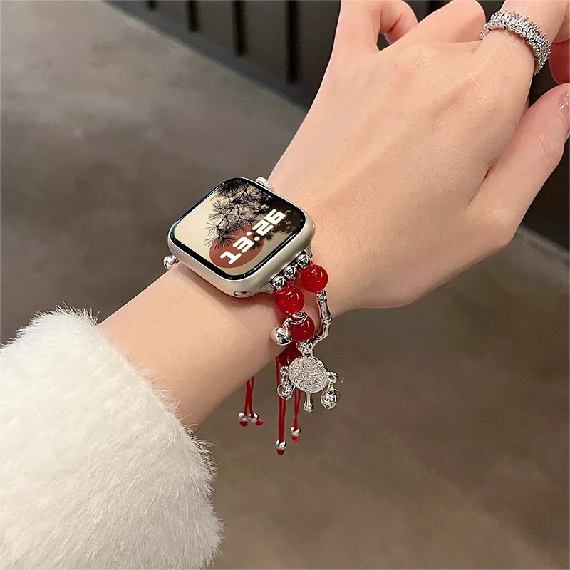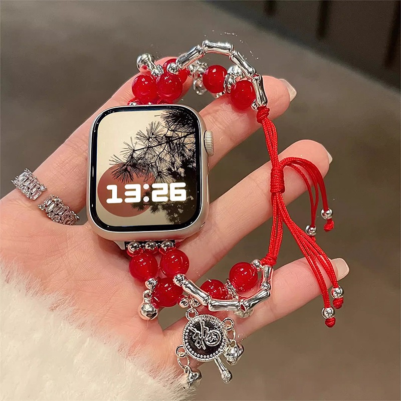 Ремешок Apple Совместимость Металлический 49мм Akkerds, Серебристый Красный, Колокольчик Благословения