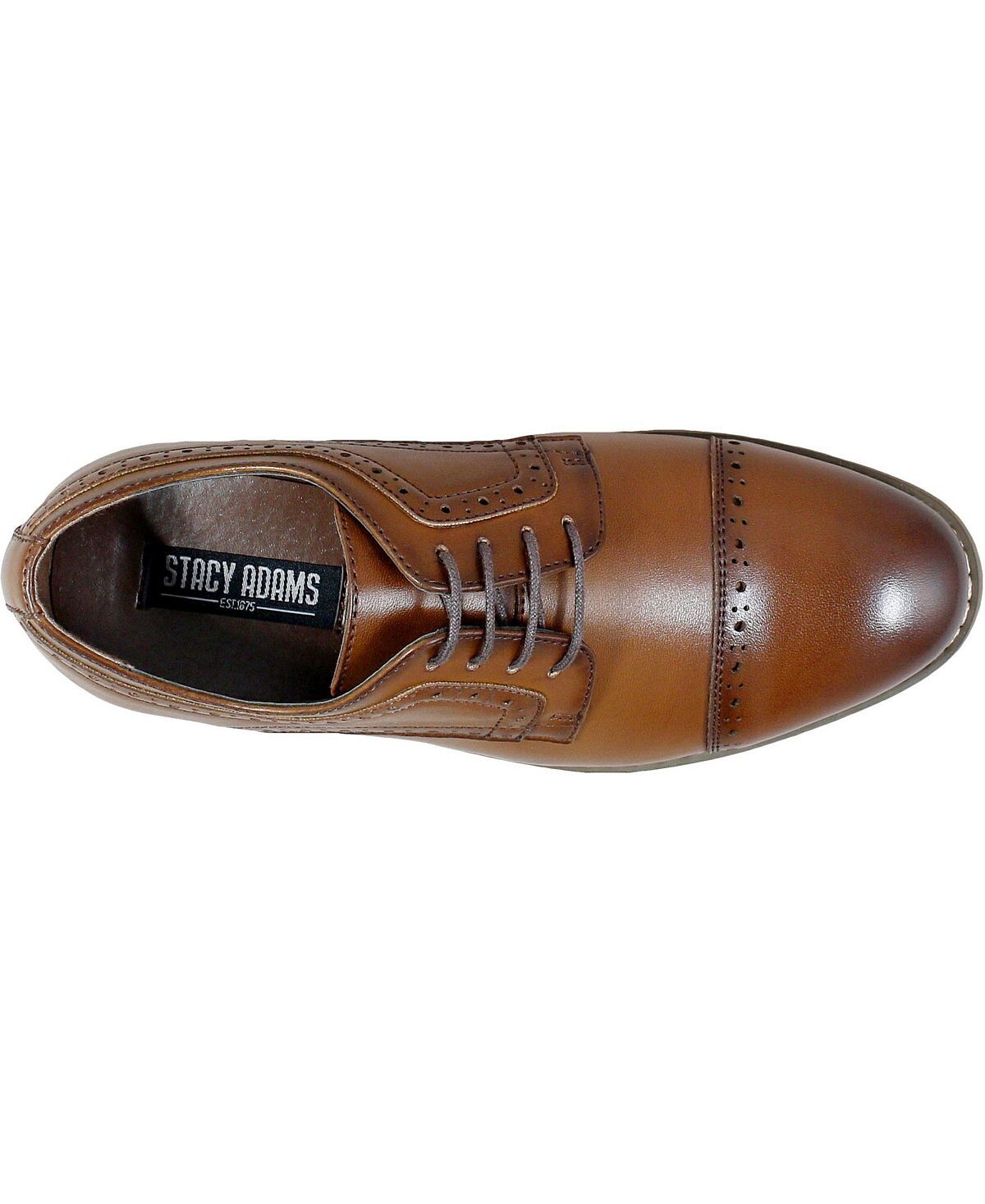 Пусть ваш маленький человечек сияет с оксфордами Stacy Adams Dickinson Cap Toe Oxford. Эта обувь с классическим закругленным носком и замысловатыми деталями перфорации одновременно классическая и крутая, как и он сам.