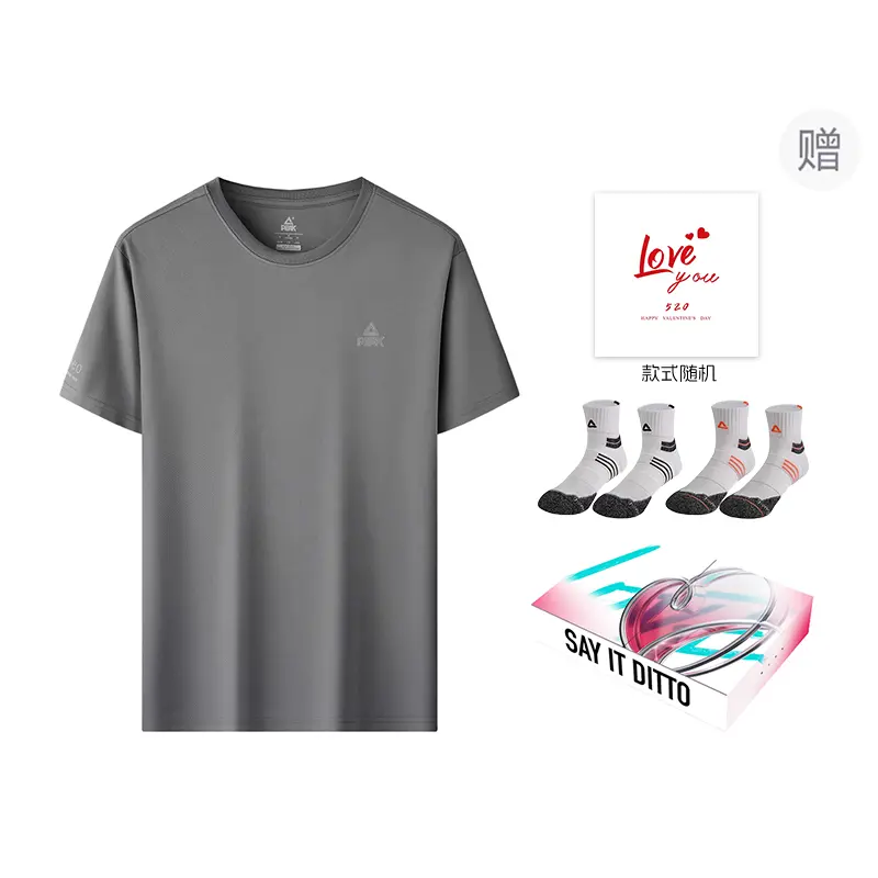 Футболка унисекс PEAK, черная с короткими рукавами + поздравительная открытка (случайный дизайн) + носки (случайные 2 пары) + коробка 2 215₽