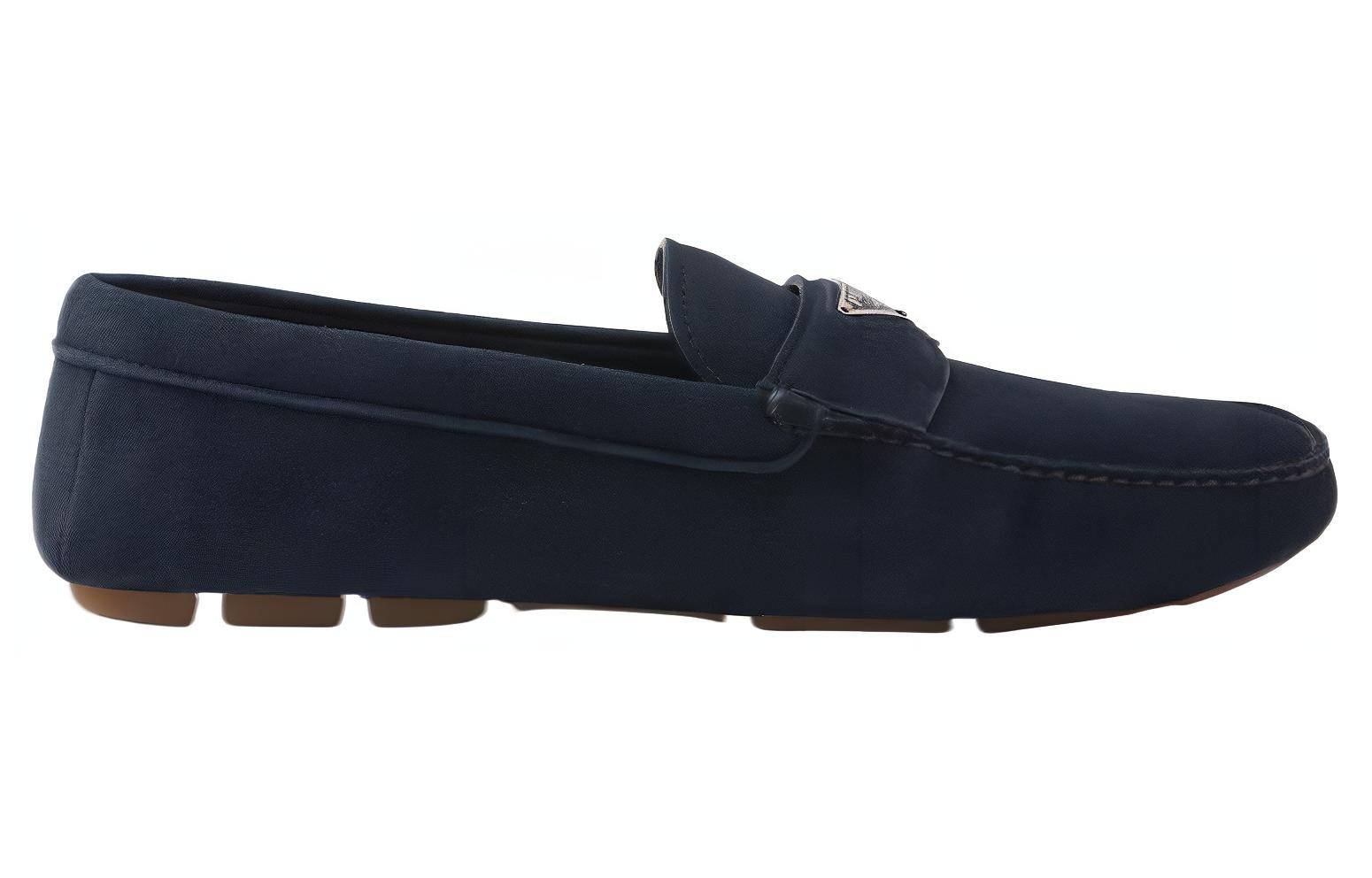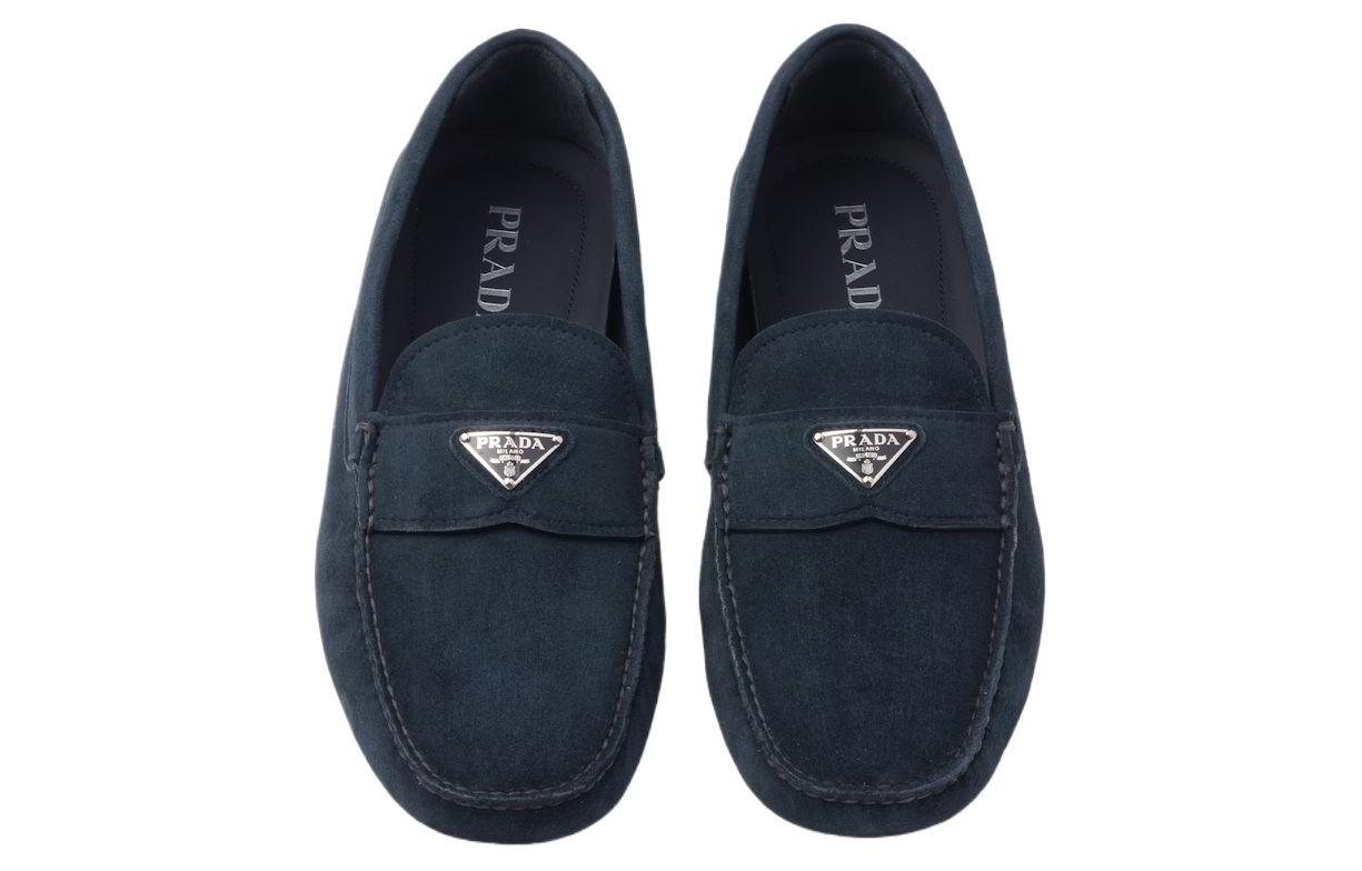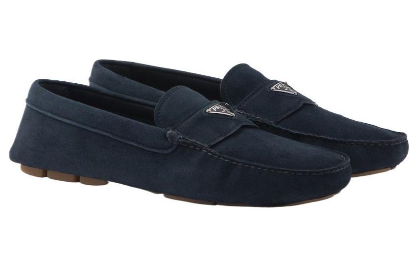 Туфли-лоферы из замши с треугольным логотипом PRADA, темно-синие