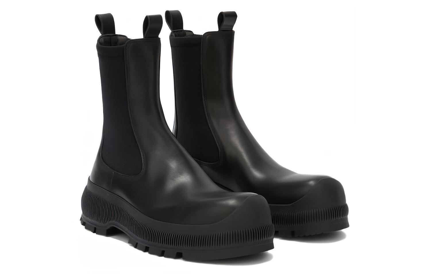 Кожаные ботинки с тиснением логотипа JIL SANDER, черные 119 271₽