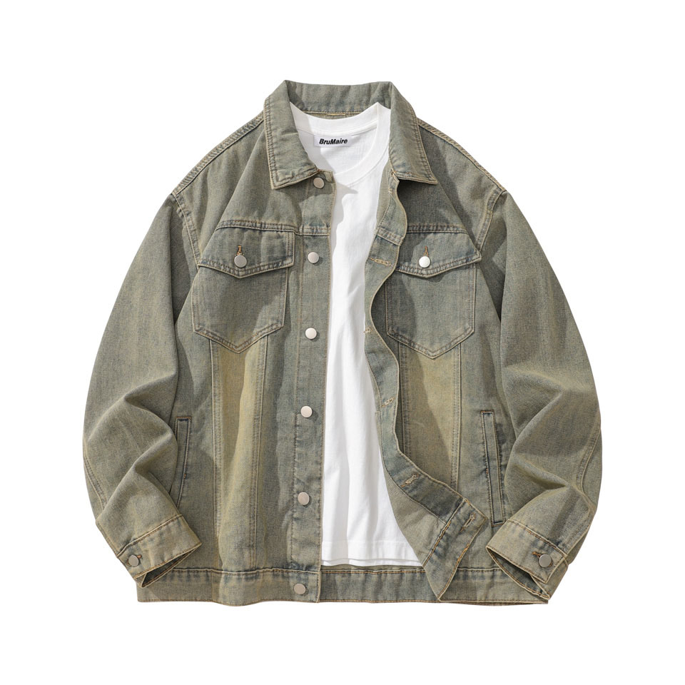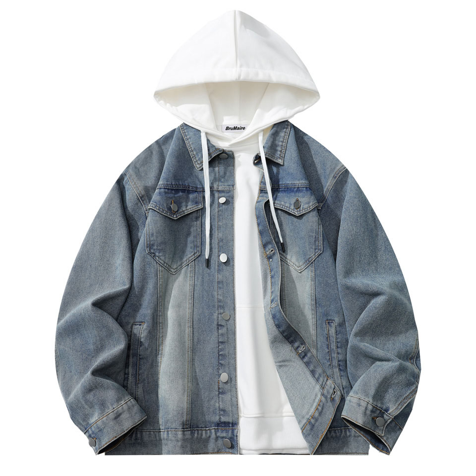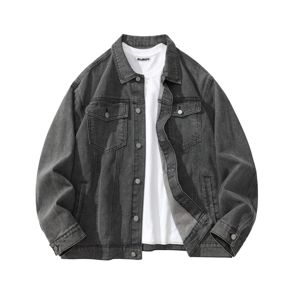 Джинсовые куртки унисекс BRUMAIRE, Темно-серое пальто и белый свитшот