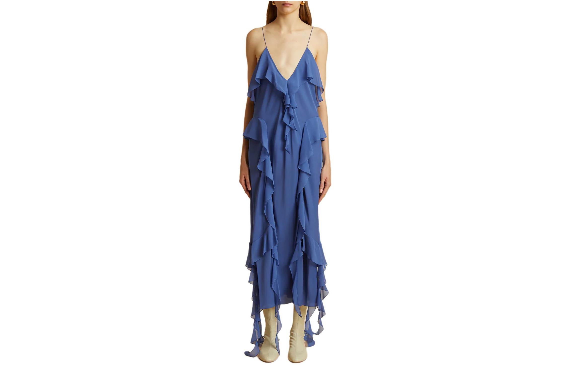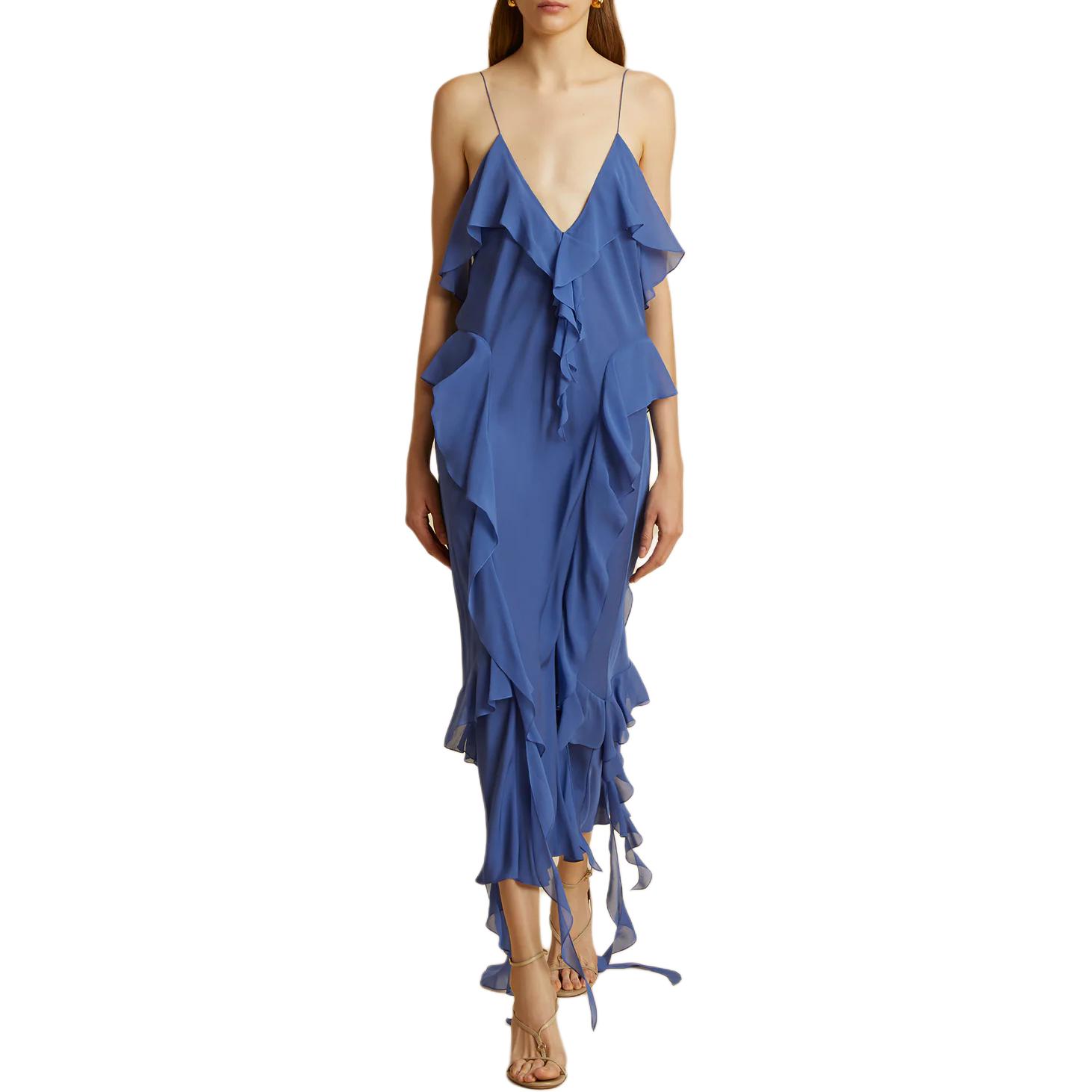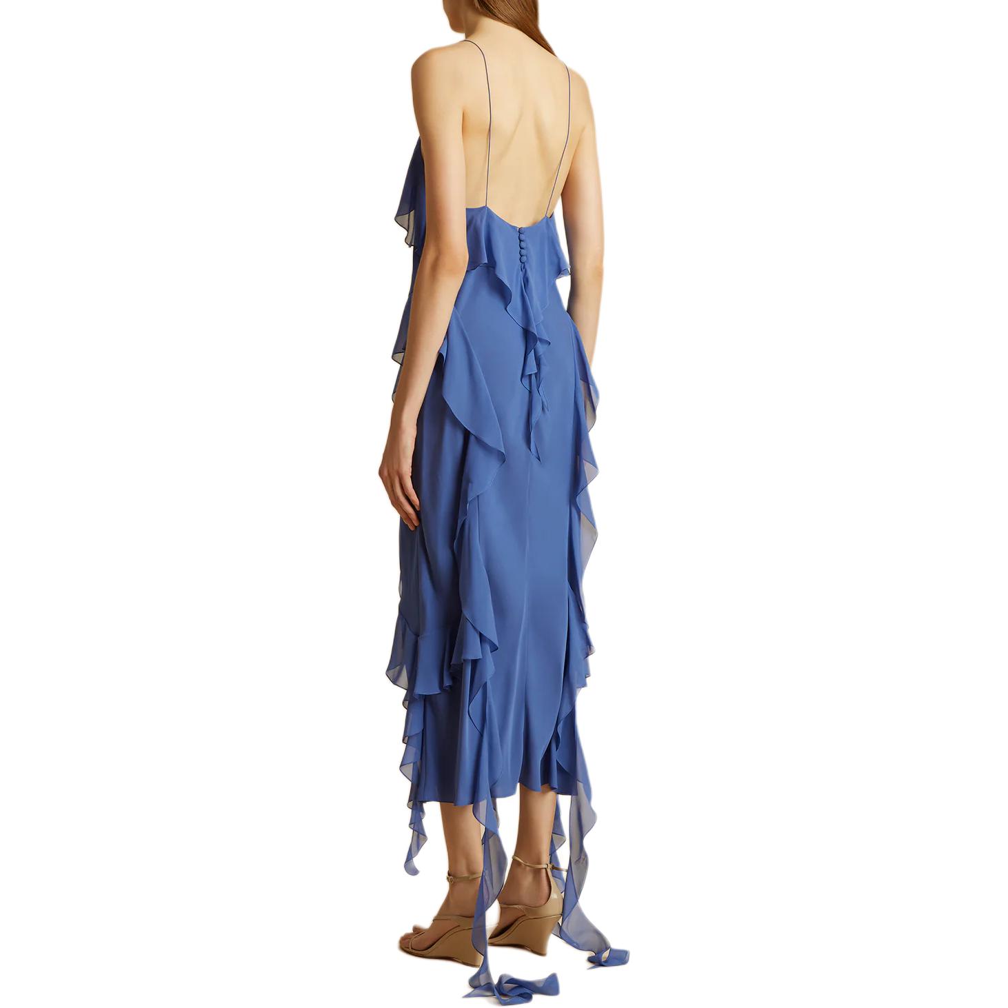 Платье миди из шелка с отделкой воланами Pim KHAITE, синий 92 540₽