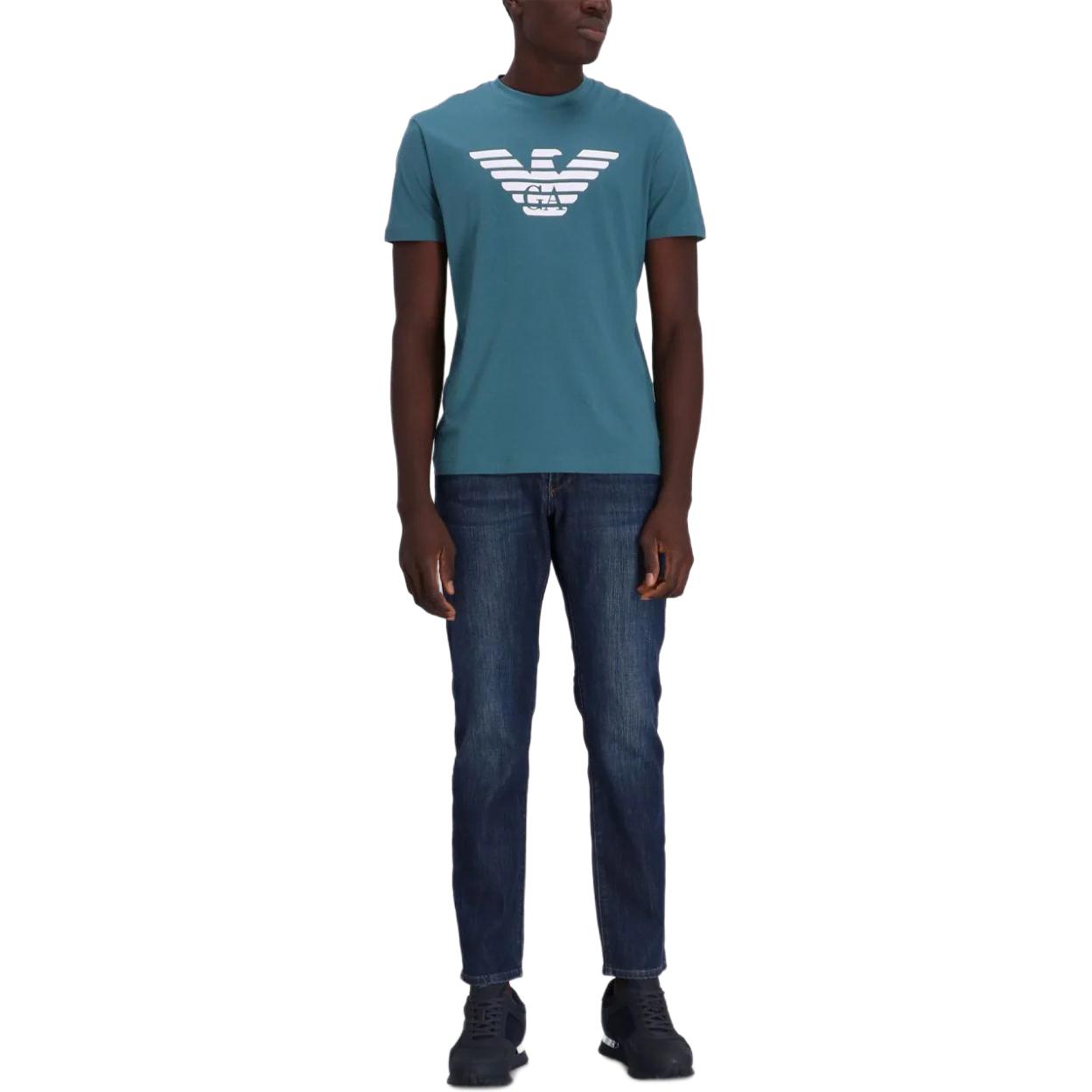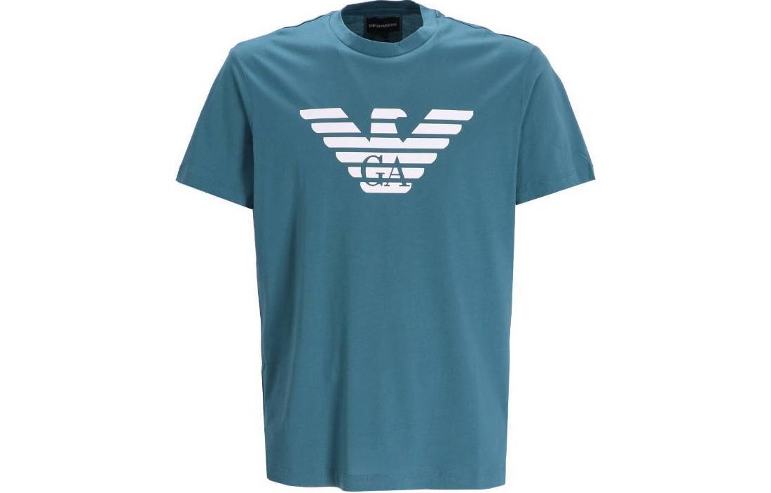 Футболка из хлопка с принтом логотипа EMPORIO ARMANI, синяя
