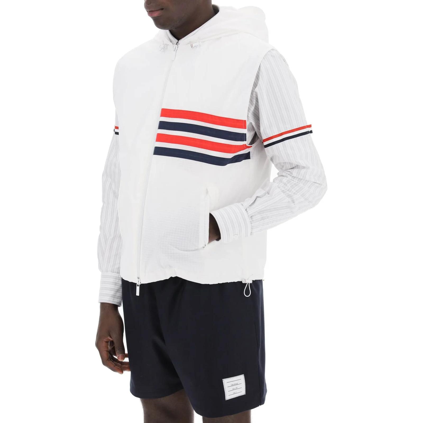 Толстовка-жилет с капюшоном и четырёхполосной отделой THOM BROWNE, белый