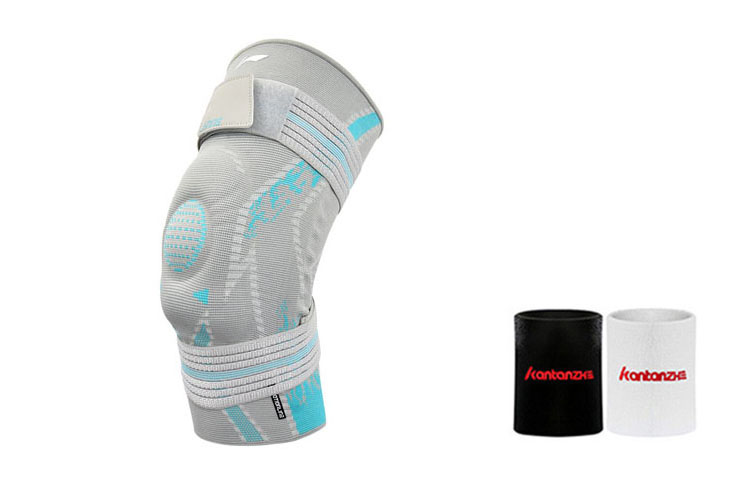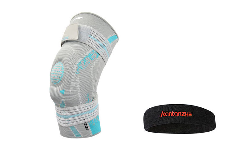 Наколенники LINING, сине-серые + повязка на голову KTZ белая