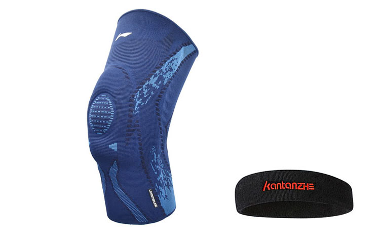 Наколенники LINING, синие + повязка на голову KTZ белая