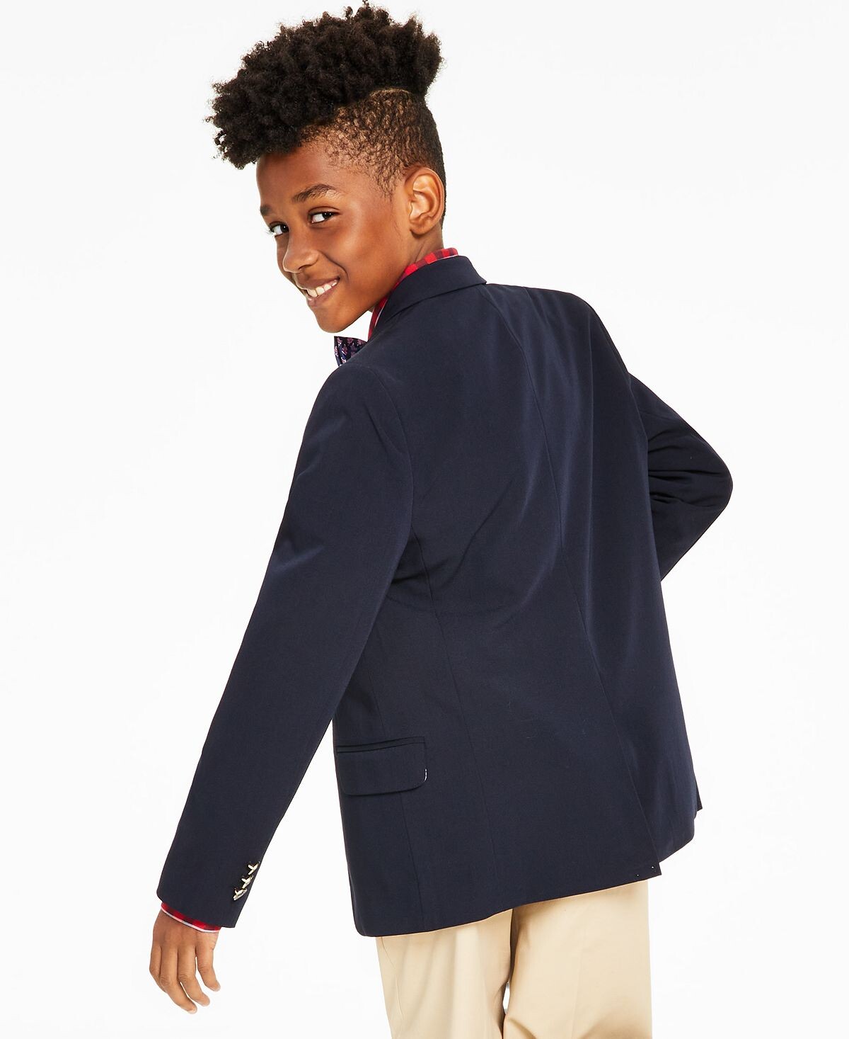 Эта куртка с подкладкой с флаговым принтом, подходящим платковым платком и декоративной отделкой пуговицами позволит ему выглядеть изысканно, но при этом чувствовать себя комфортно благодаря своей эластичной ткани.