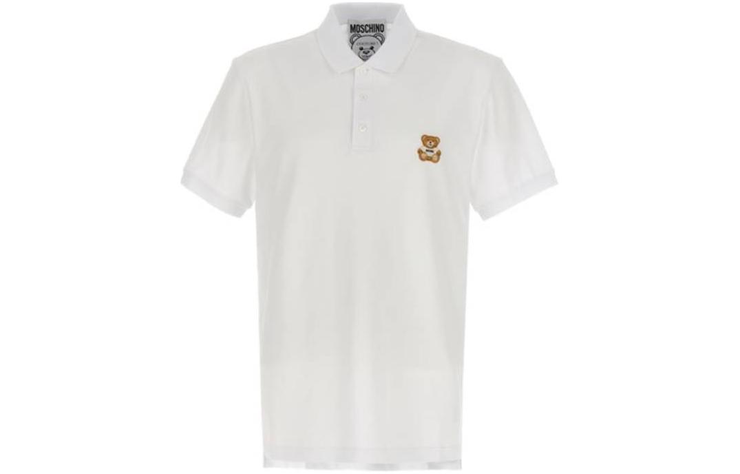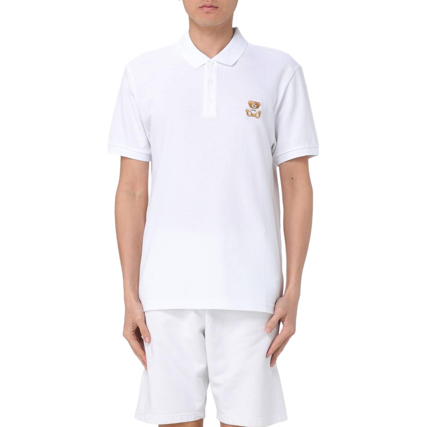 Белая хлопковая поло MOSCHINO с принтом плюшевого мишки