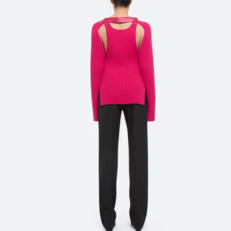 Обрезанный ребристый джемпер Helmut Lang, фуксия