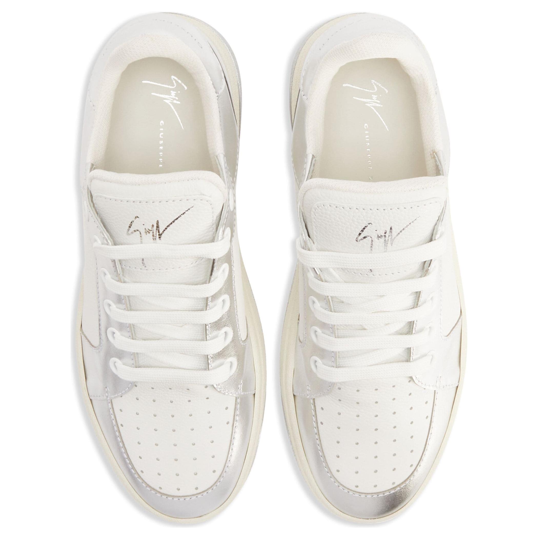 GZ94 Кроссовки низкие кожаные Giuseppe Zanotti, серебристо-белые
