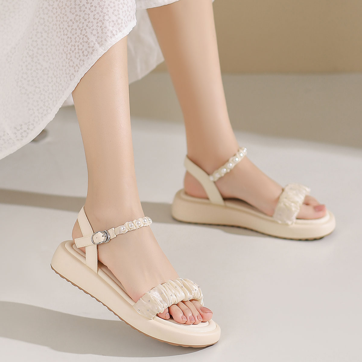 Сандалии на ремешках 3 см JOSINY Женские Экрю 3 623₽