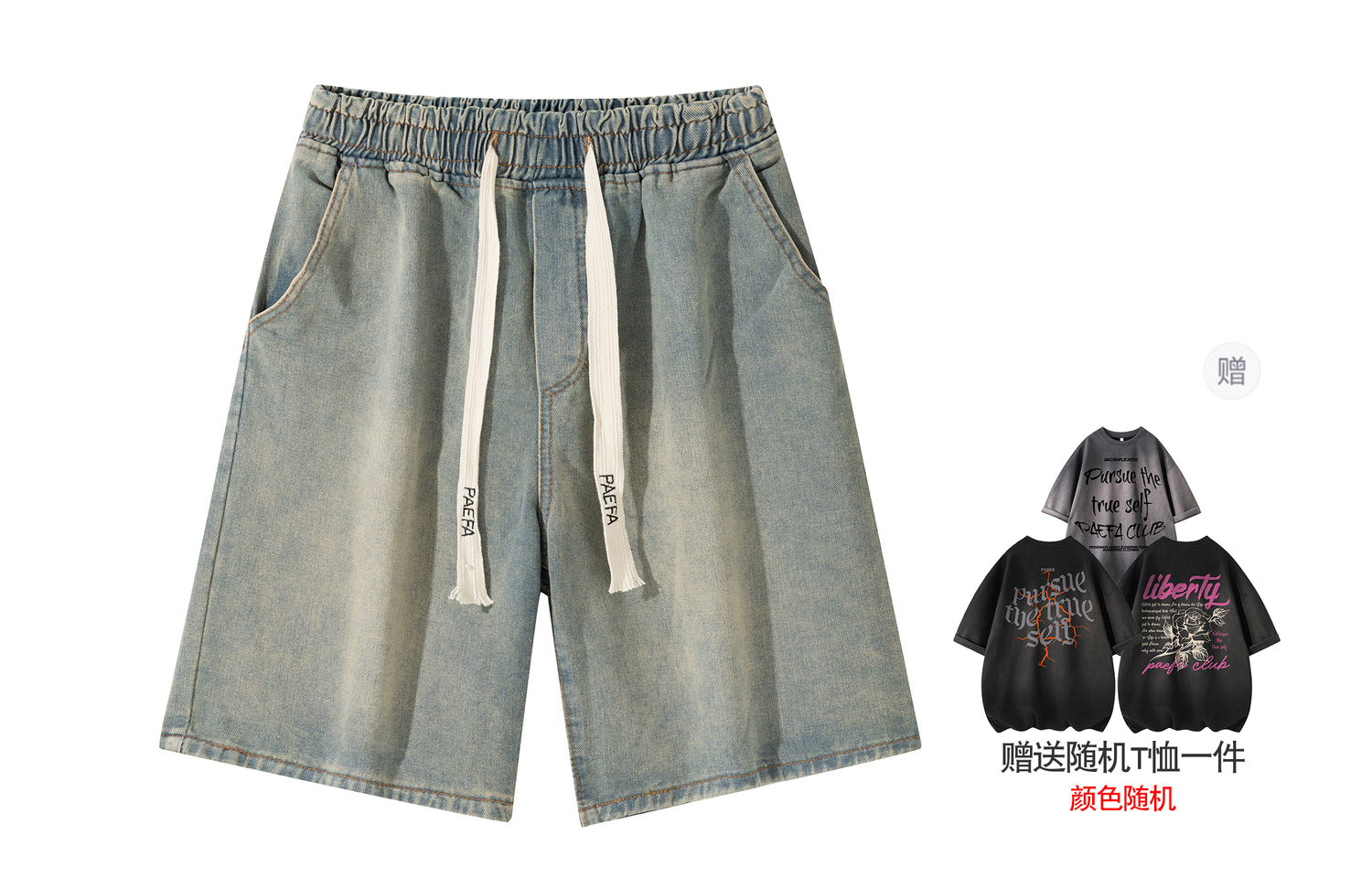 Джинсовые шорты унисекс PAEFA, светло-голубые (в комплекте с футболкой бренда)