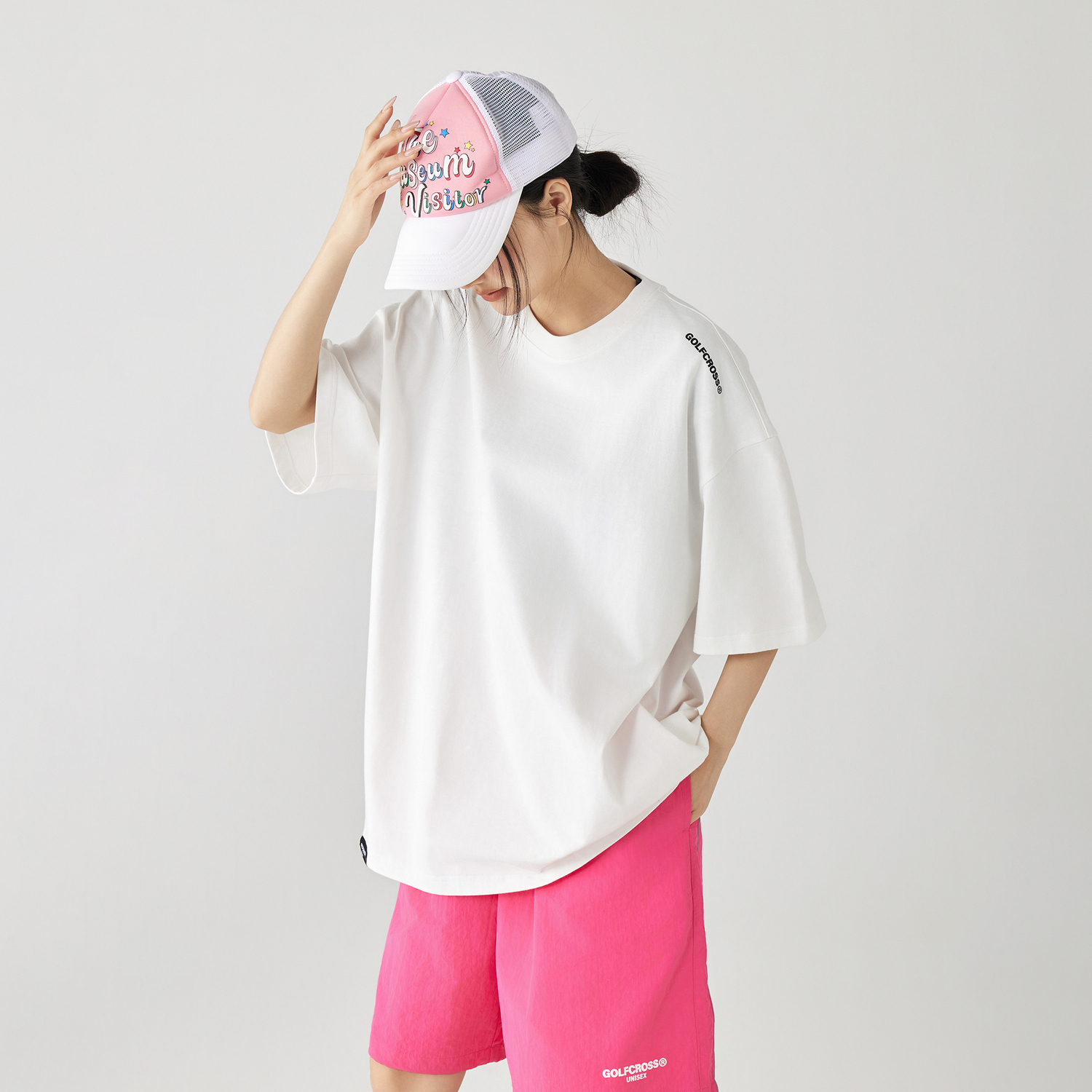Футболка унисекс GOLFCROSS, белый вересково-серый