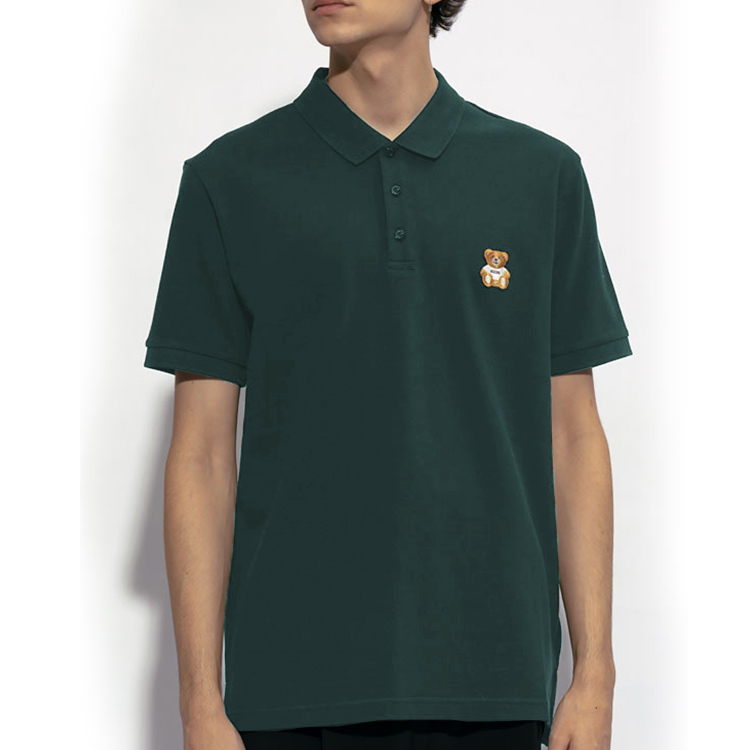 Футболка поло с вышивкой медведя MOSCHINO, зелёная