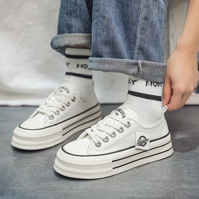 Женские низкие кеды из холста Tonlion, белые (Панда)