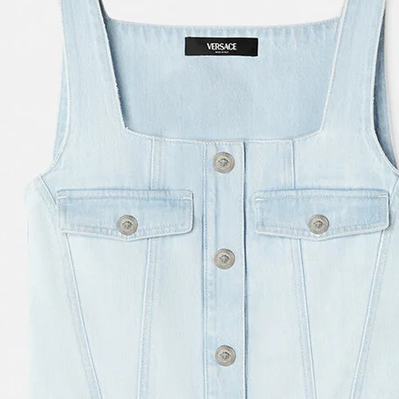 Футболка без рукавов джинсовая мини VERSACE, синяя 34 811₽