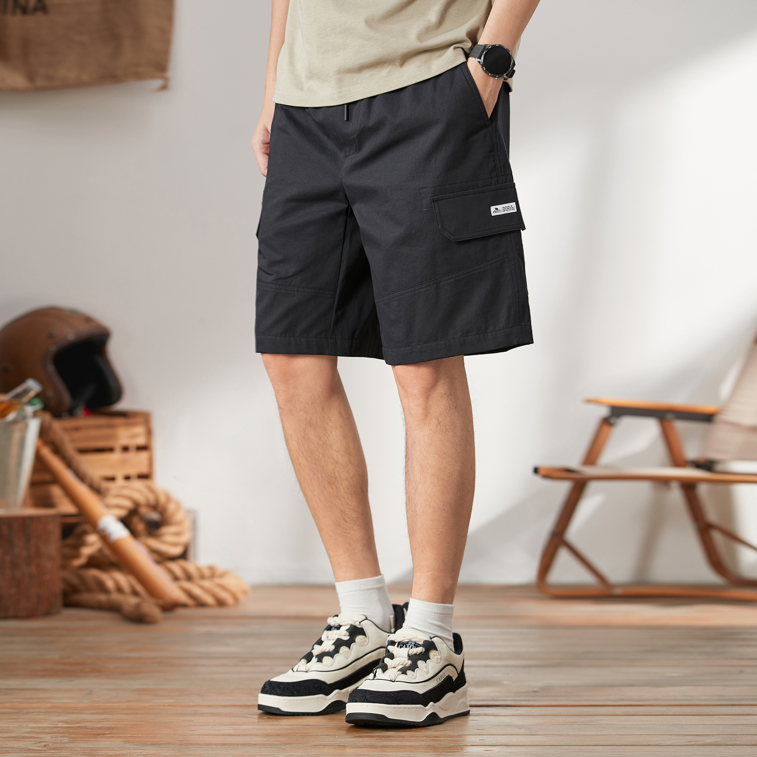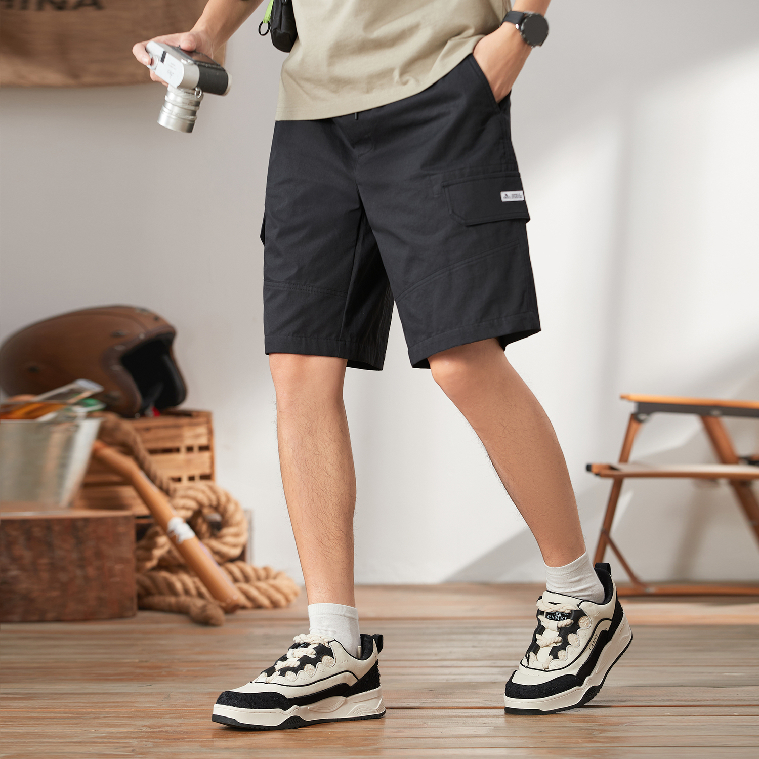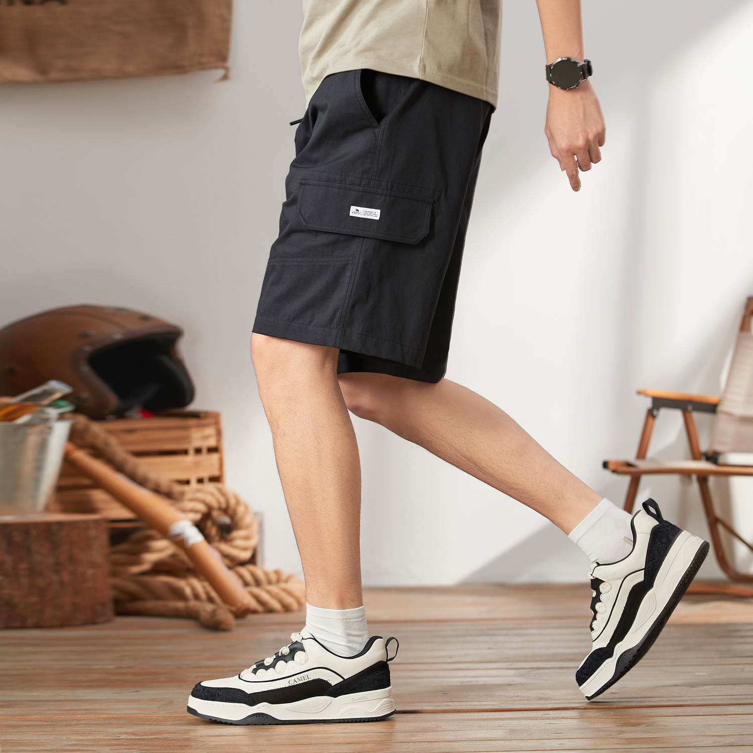 Шорты карго мужские CAMEL, оливковый зеленый