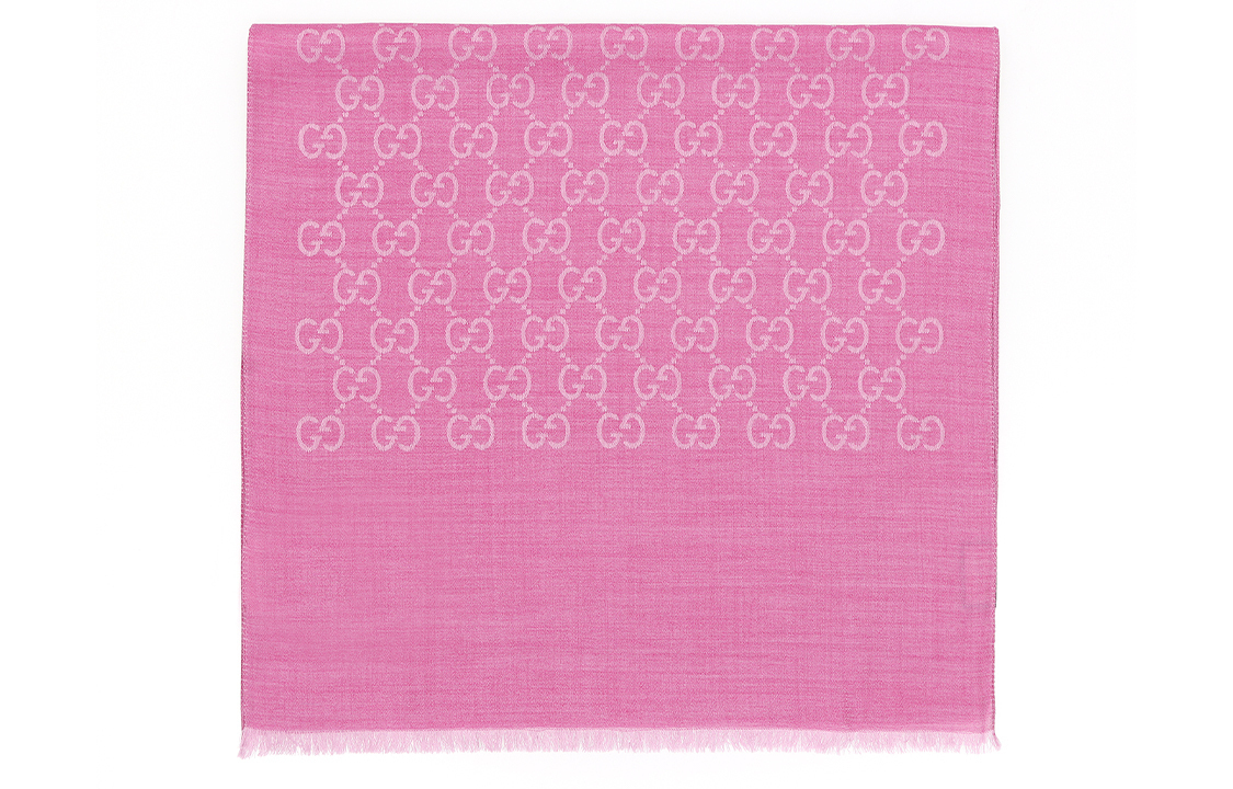 Женская шаль с бахромой и жаккардовым узором Double G из шерсти GUCCI 15 120₽