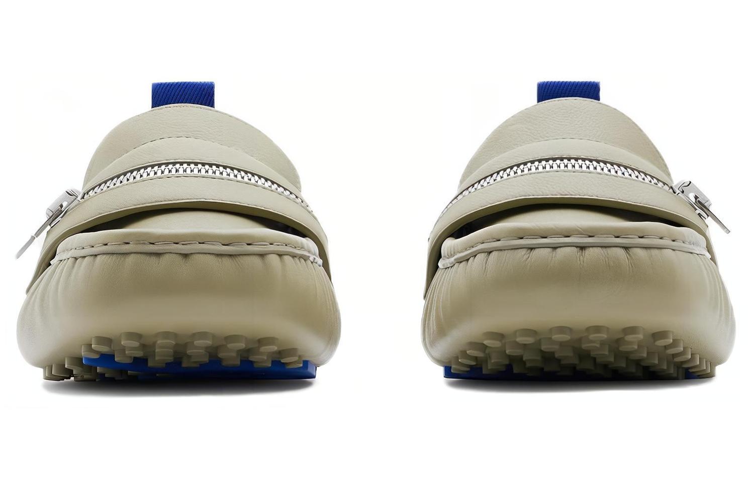 Лоферы итальянского производства из зернистой буйволиной кожи. Дизайн с застёжкой-молнией в форме буквы B и рельефной подошвой в горошек вдохновлён мотоботами.