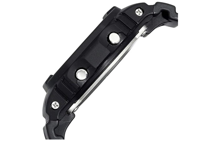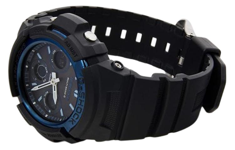 Одни из самых небольших и компактных G-Shock-ов на данный момент. Лаконичный циферблат с крупными стрелками и цифровыми окошками способствует хорошей читаемости и удобной индикации данных. Дизайн корпуса выполнен с нотками милитаризма — темные тона, угловатые часовые метки, точечные вставки на корпусе и ремешке придутся по душе военным. Благодаря небольшой толщине и ширине корпуса AWG-M100 подойдут даже для самого маленького запястья и не будут на нем выпирать.