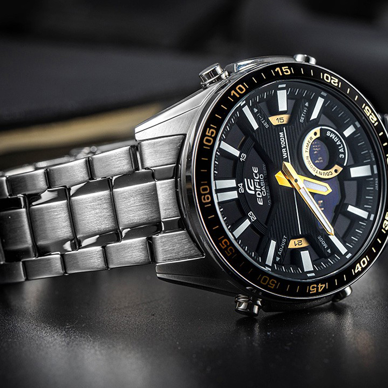 Следуя фирменному стилю Speed & Intelligence, EDIFICE выпустила новую серию EFV-C100D/EFV-C100L с ремешками из нержавеющей стали или натуральной кожи на выбор. Эти часы оснащены многослойным циферблатом с 3D-почасовой шкалой времени и двумя аналоговыми и цифровыми дисплеями. Вся серия обладает такими практичными функциями, как водонепроницаемость до 100 метров, 10-летний срок службы батареи, хронограф, таймер обратного отсчёта, мировое время и телефонная книга на 30 номеров.