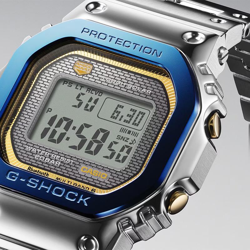 Модель GMW-B5000 — современная интерпретация культовой формы самого первого G-SHOCK, но выполненная в цельнометаллическом корпусе. Дизайнерские элементы, включая акцентные синие и золотые цвета, а также рифлёный узор, отдают дань уважения оригинальному Casiotron и придают часам по-настоящему особенный вид, навеянный образами неба и моря.