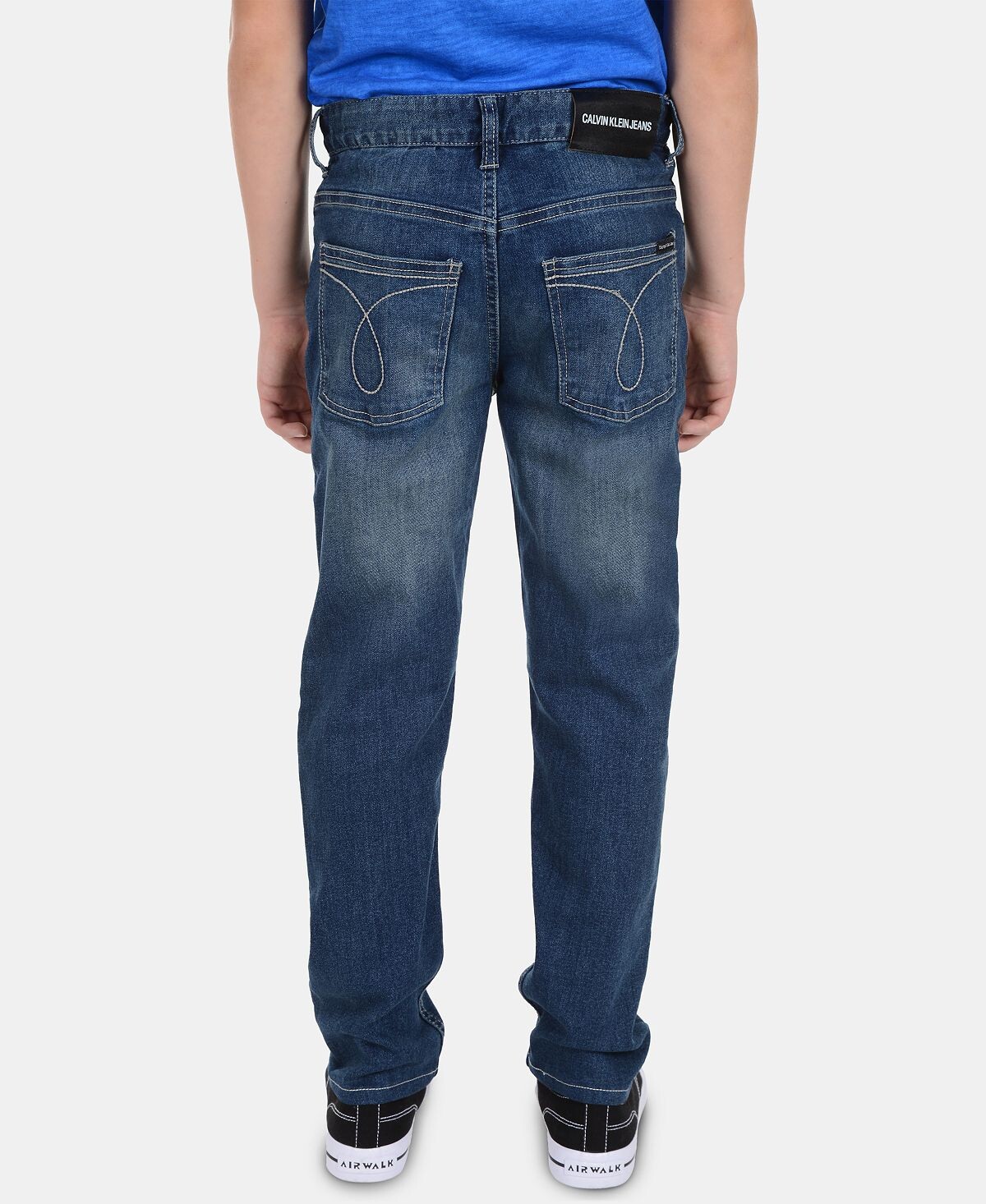Облегающий крой помогает ему сохранять стройность, когда он носит эти эластичные джинсы с пятью карманами от Calvin Klein.