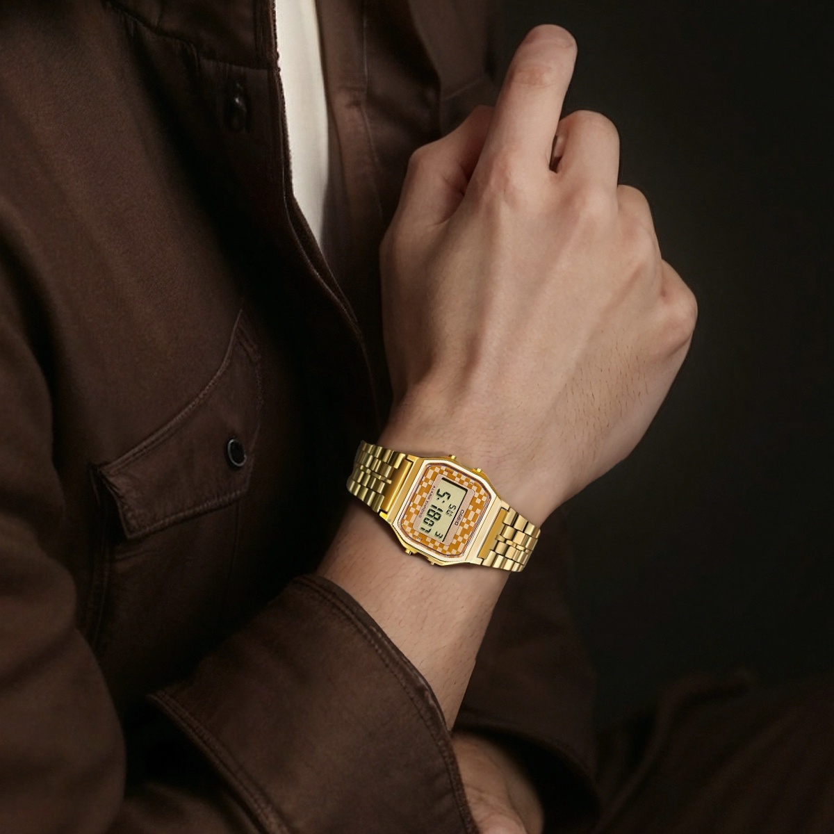 Мужские классические часы Casio 33 мм кофейного цвета A-159WGEA-9