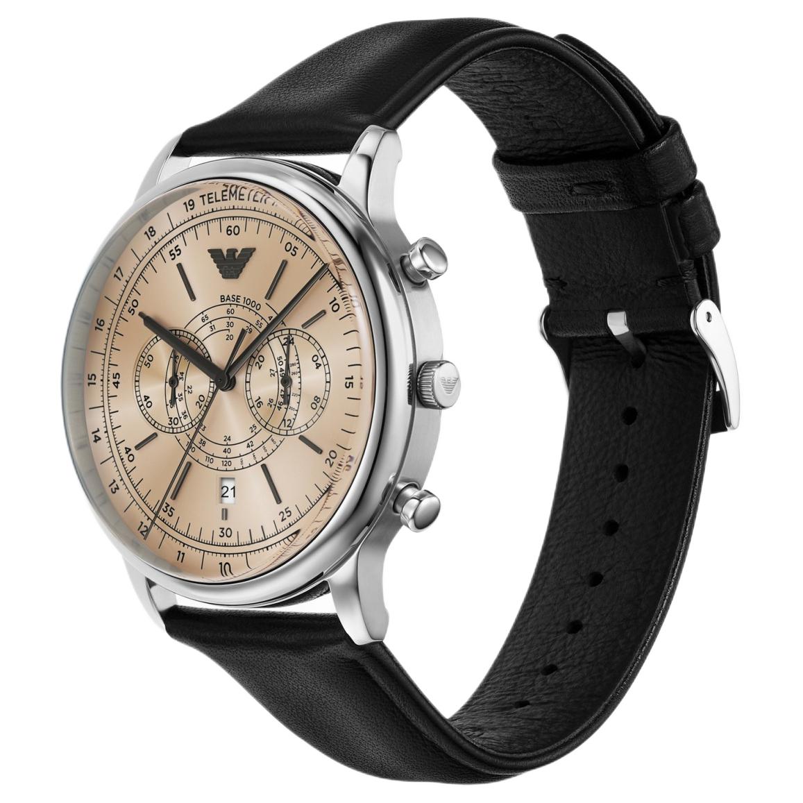 Хронограф с телеметром на черной кожаной ремешке EMPORIO ARMANI