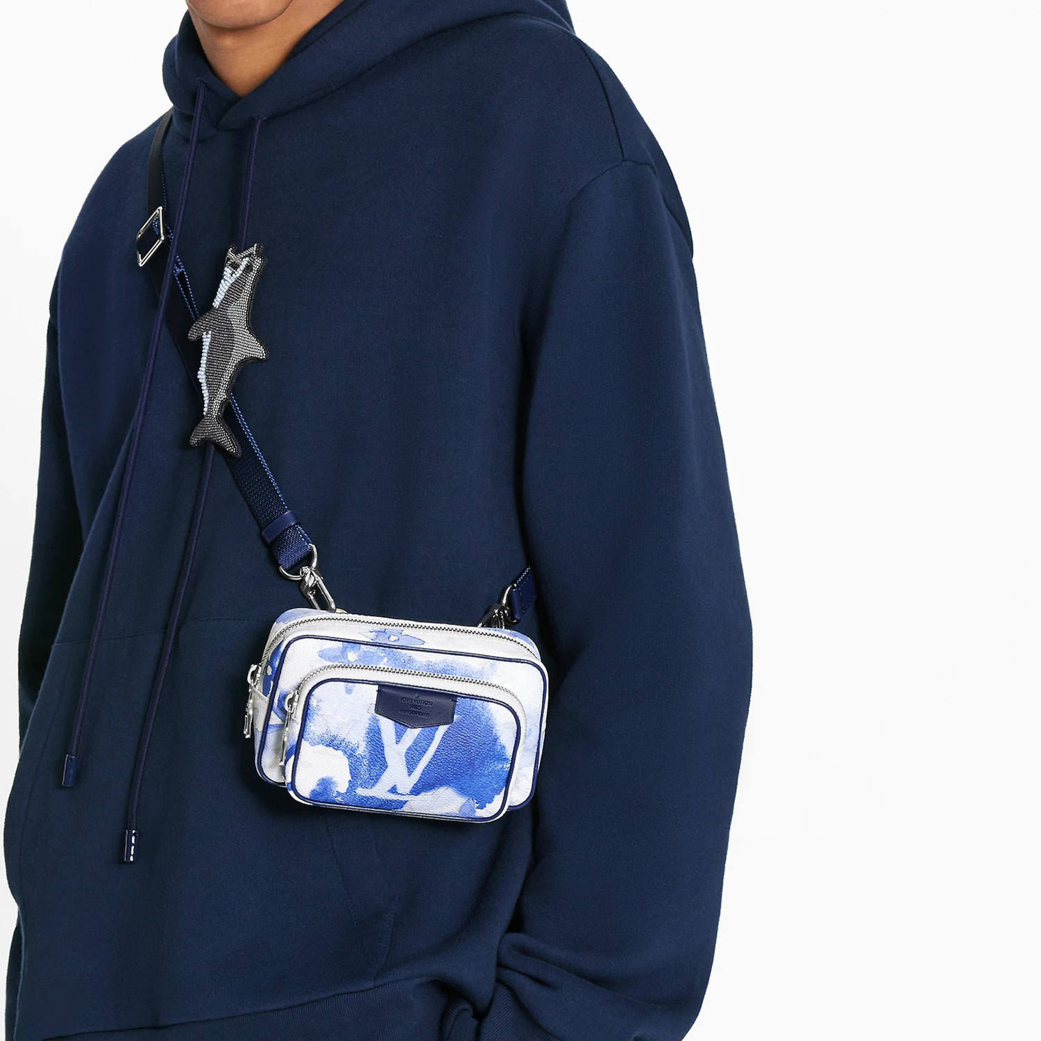 Сумка-кошелек на пояс с монограммой в технике акварель голубой LOUIS VUITTON