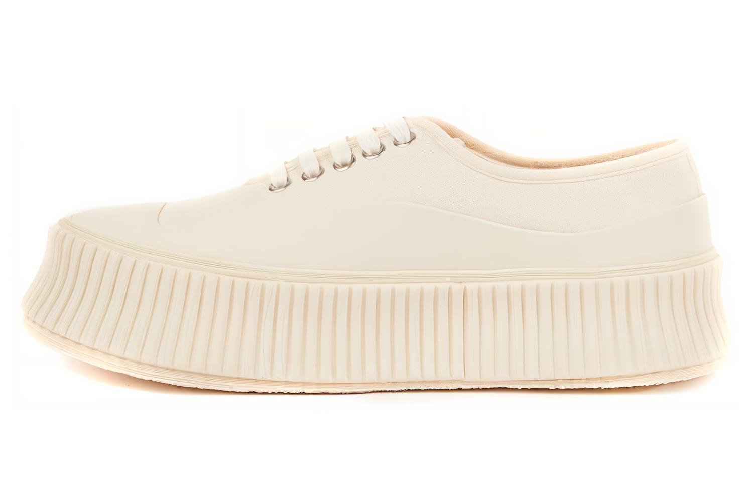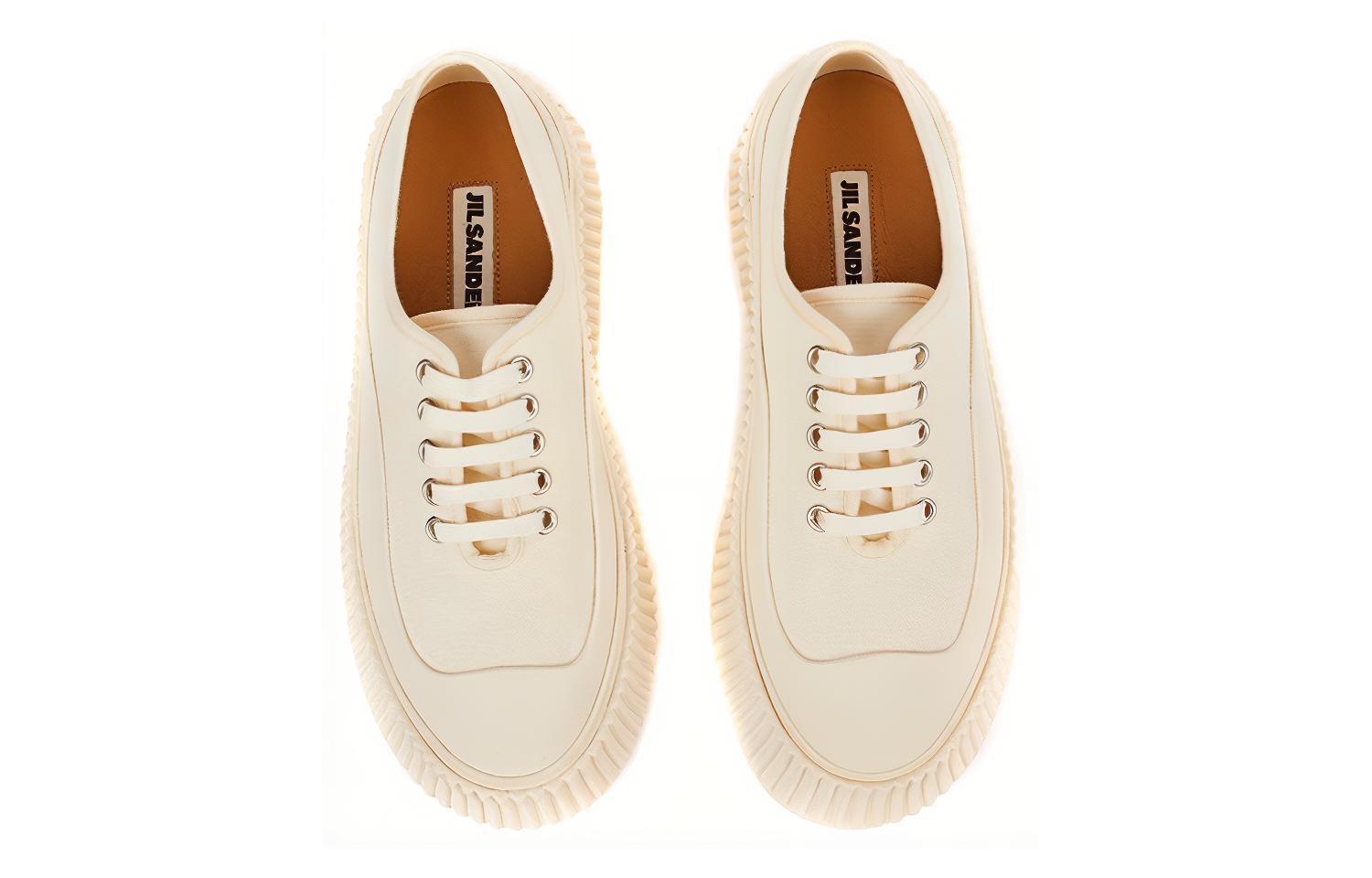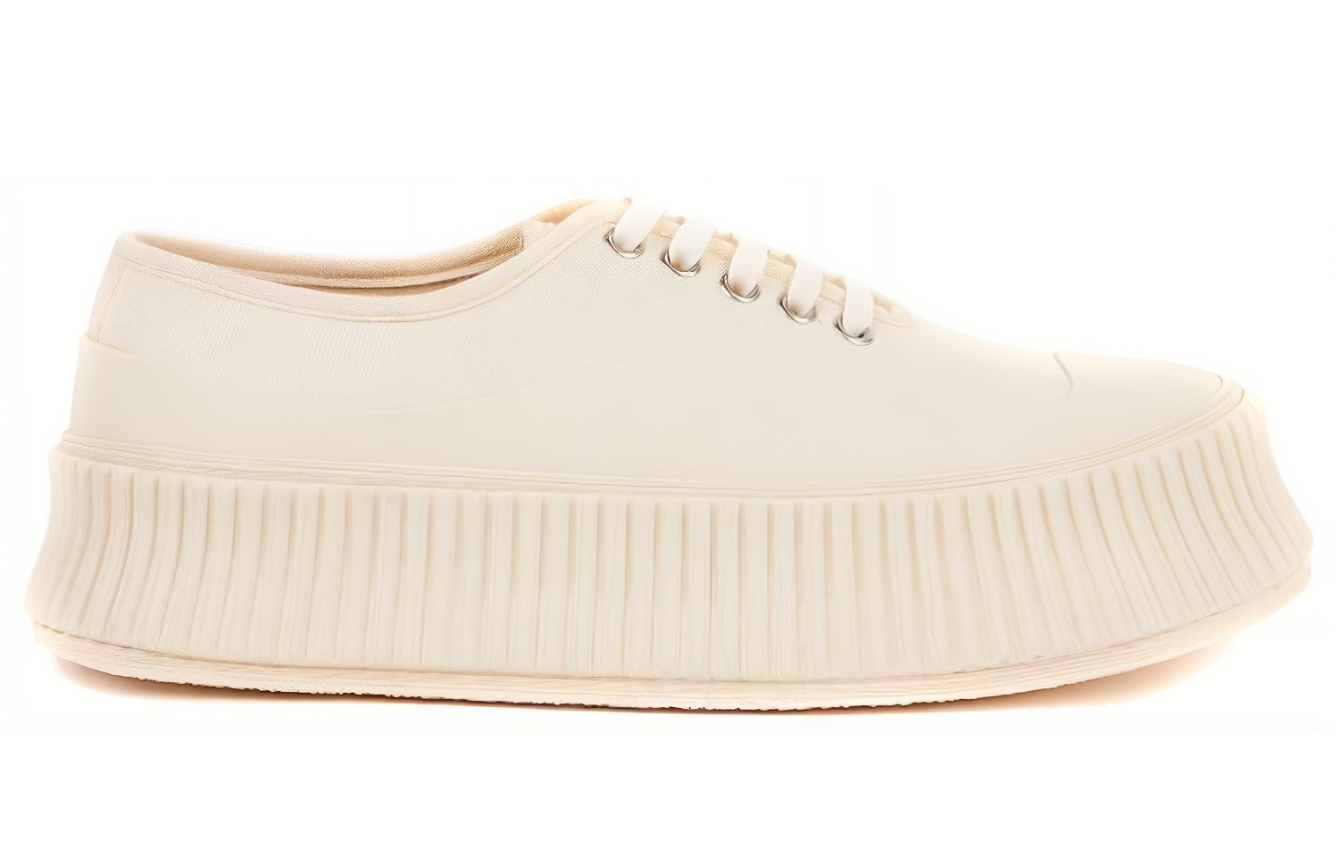 Туфли на платформе – основа лукбука коллекции Cruiser 2021 от Jil Sander, и эти кроссовки бежевого цвета воплощают изысканную чувственность бренда. Изготовленные из парусины, они дополнены рифленой резиновой подошвой и ребристой платформой. Они добавят уверенности вашим повседневным образам.