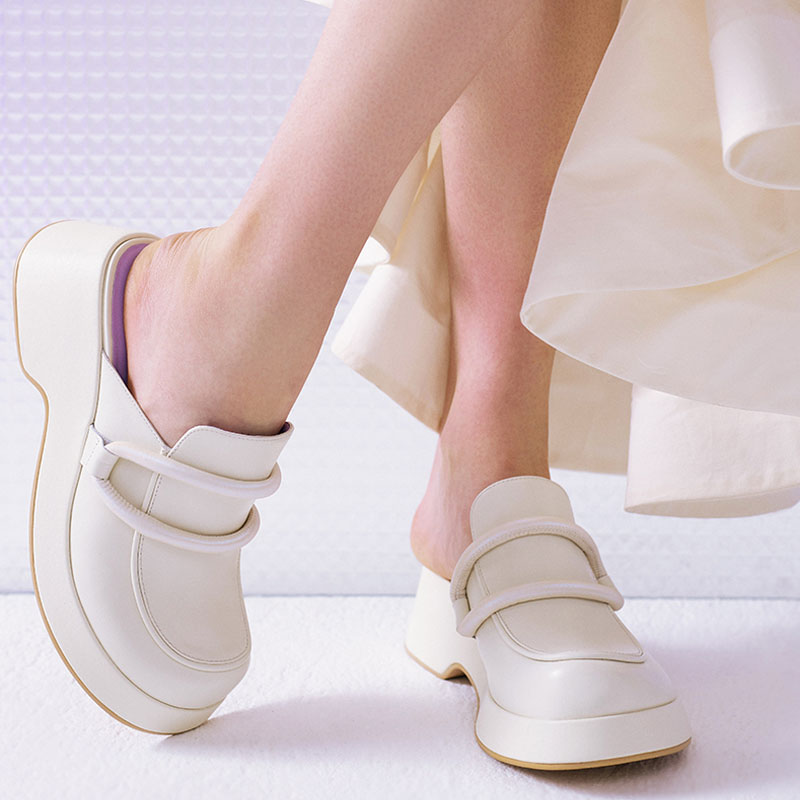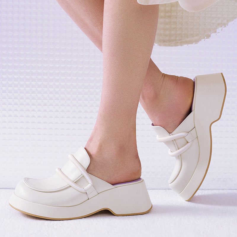 Идеальное сочетание мюлей и лоферов, эти туфли легко надевать и носить, создавая очаровательный и стильный образ. Слегка наклонный носок обеспечивает лёгкость и комфорт при ходьбе. Цельный формованный верх и обработанные вручную края создают изысканный вид. Объёмные декоративные линии, выполненные вручную, напоминающие облака, отражают свет, создавая ощущение футуристических технологий. Слегка увеличенная платформа добавляет высоты, обеспечивая устойчивость и комфорт.