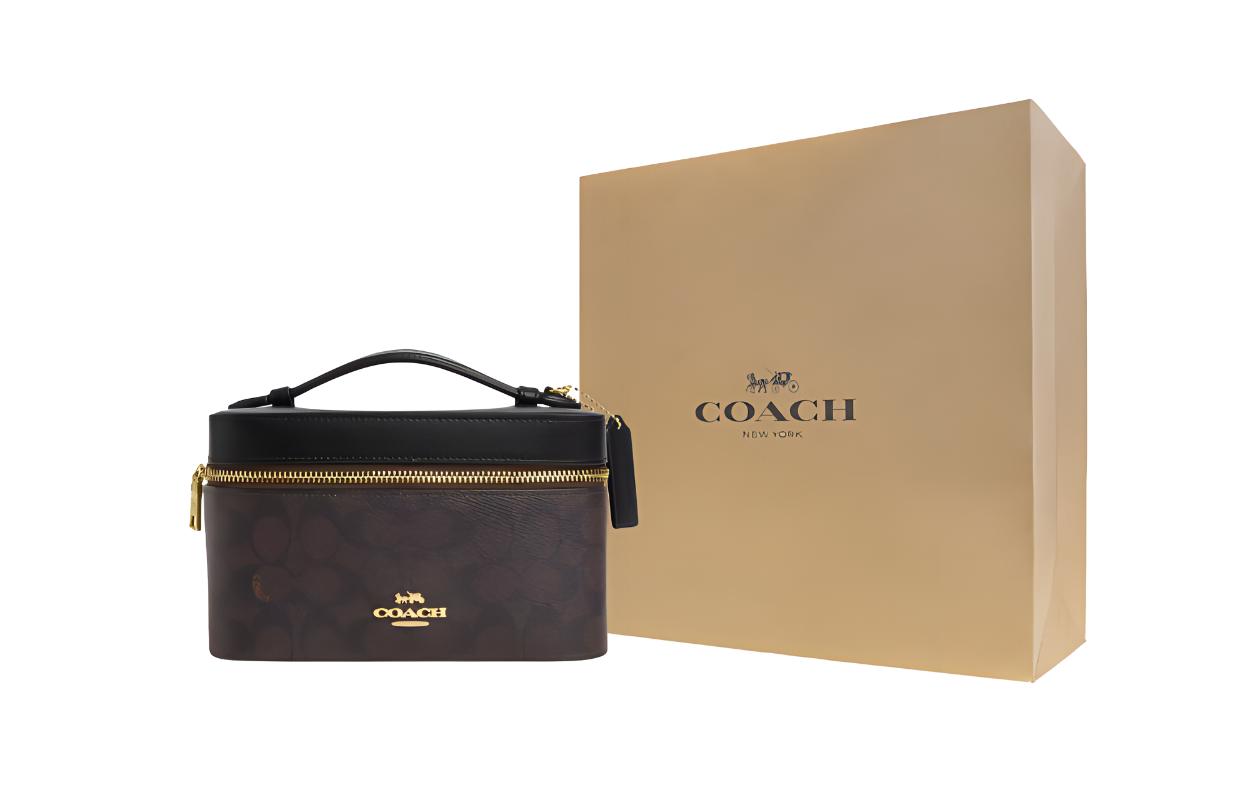 Сумка для макияжа из лакированного полотна Coach Walnut & Black 23 673₽