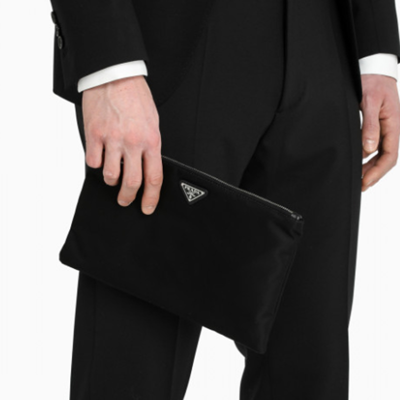 Нейлоновая сумка на запястье клатч мужская черная PRADA